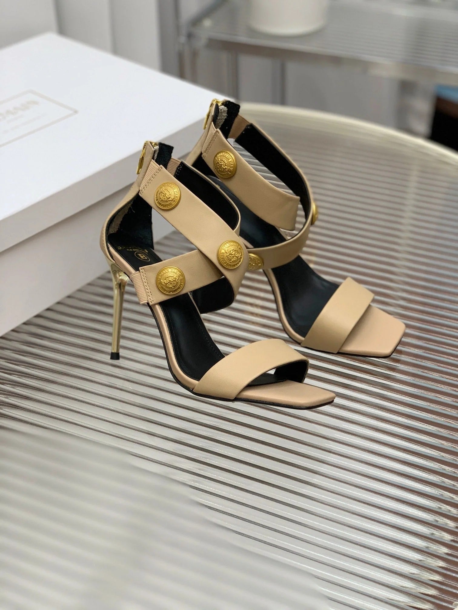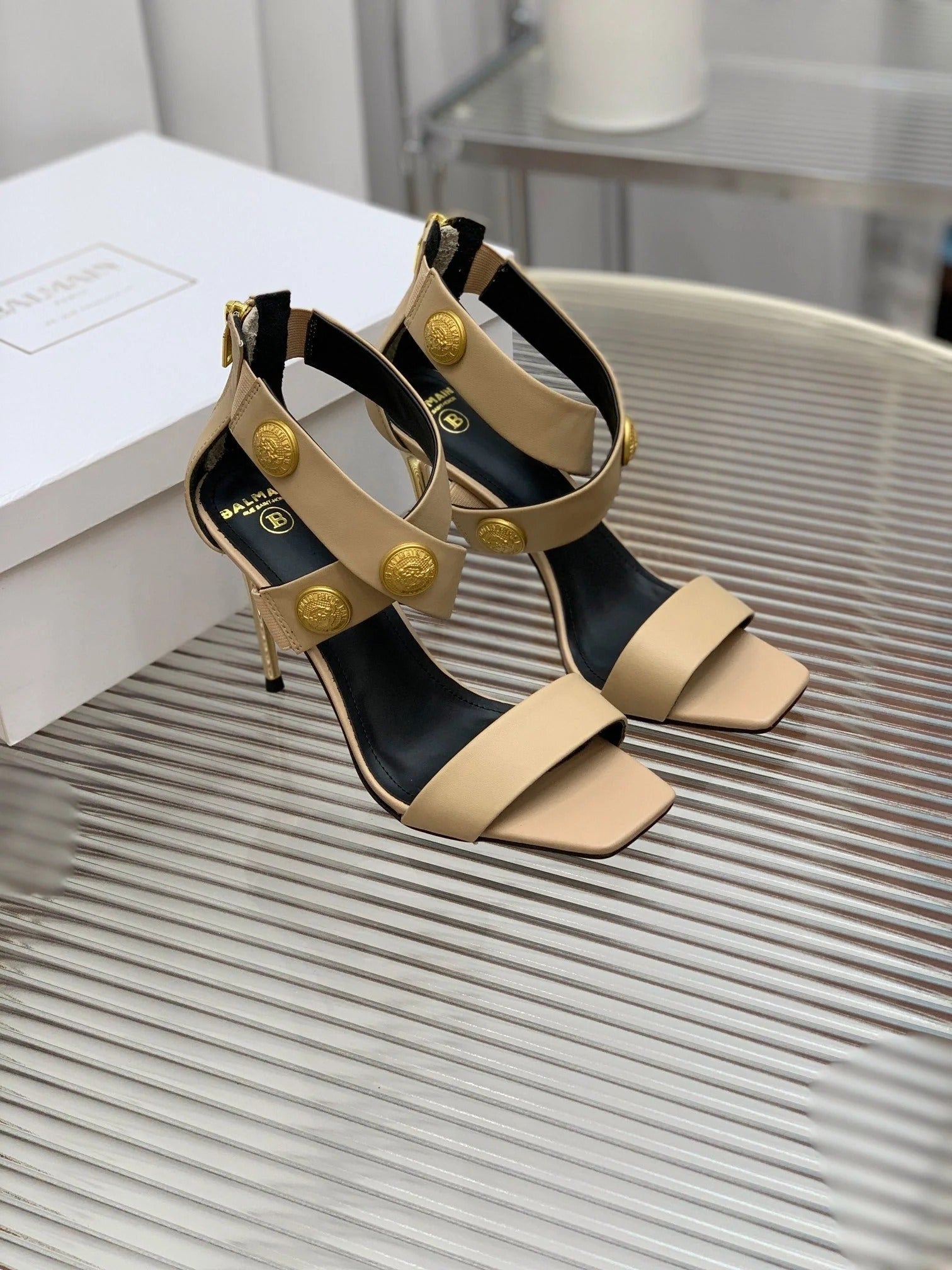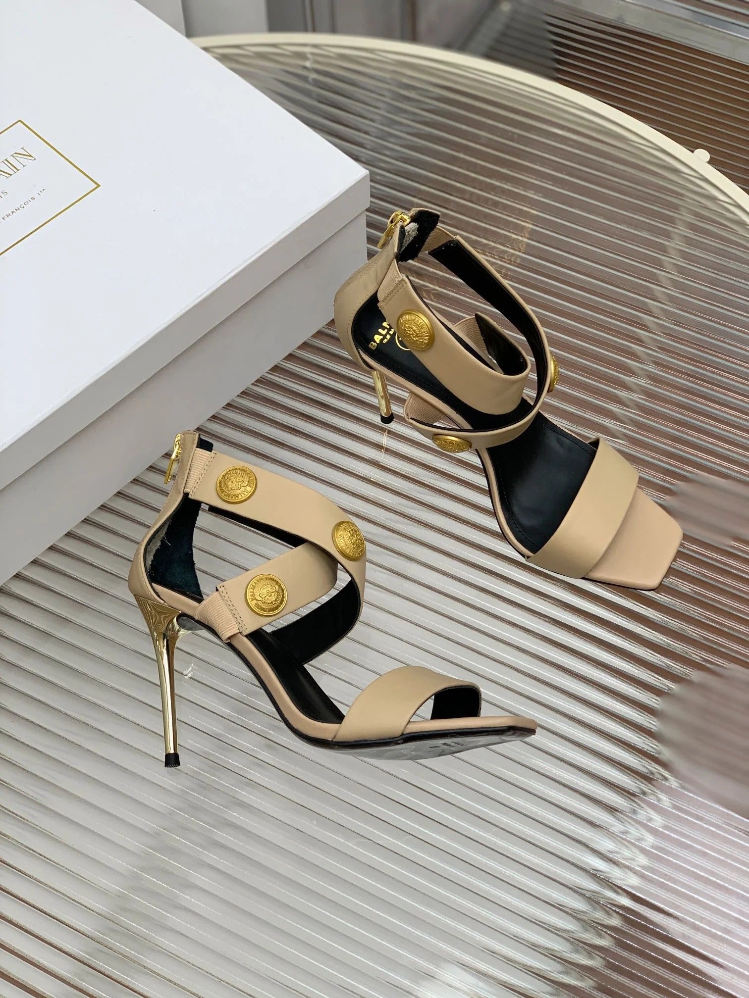 BALMAIN 25S CROSSOVER STRAP HIGH HEELS 95MM IN LIGHT BROWN CALFSKIN