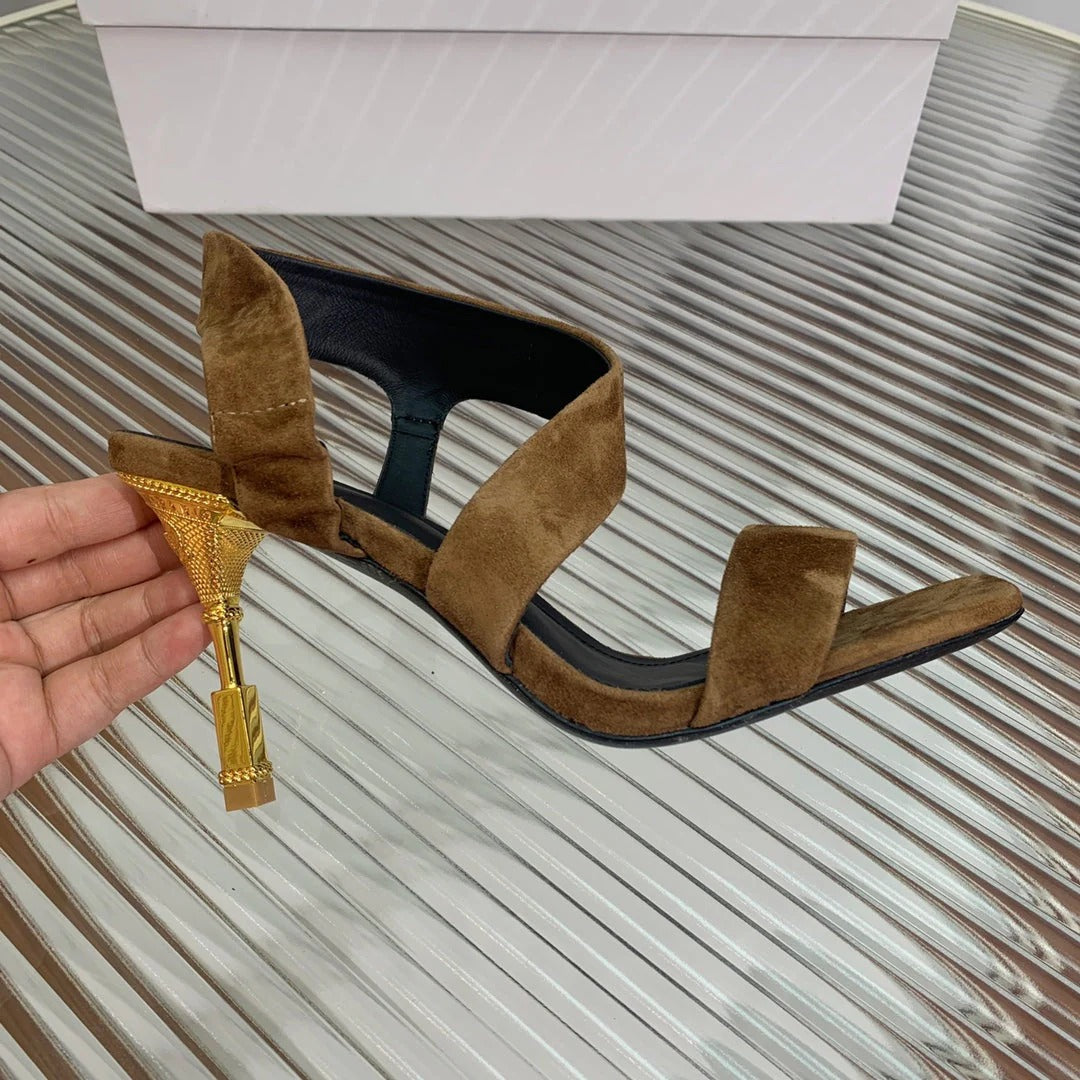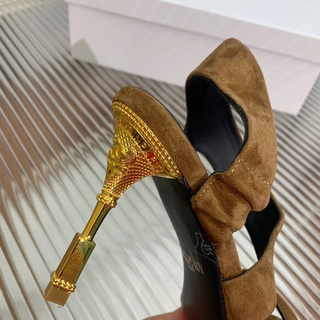 BALMAIN 25S HIGH HEEL SANDALS 95MM IN BROWN SUEDE