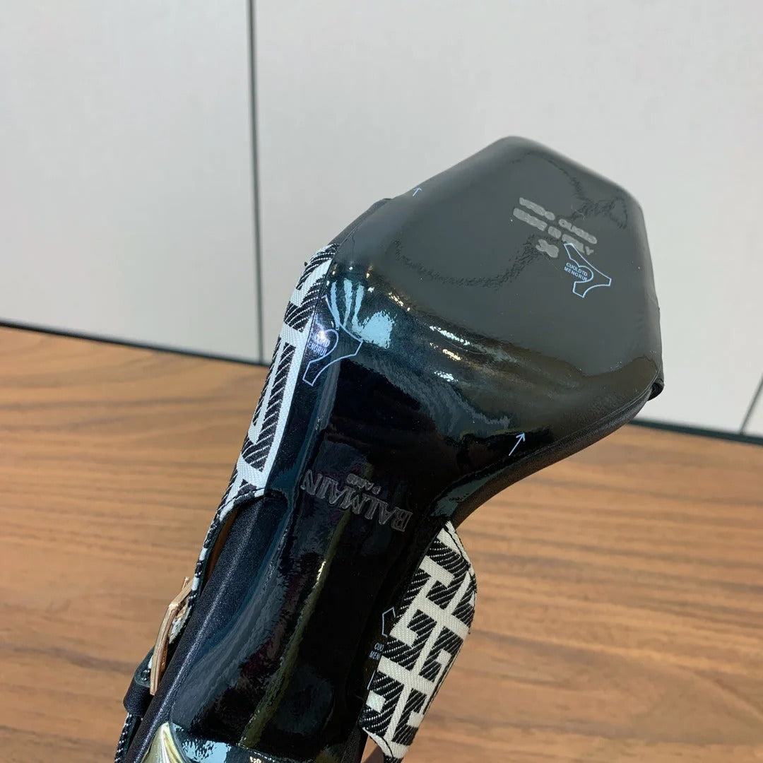 BALMAIN 25S JACQUARD KNIT SLINGBACK PUMPS 95MM IN BLACK AND PINK CALFSKIN