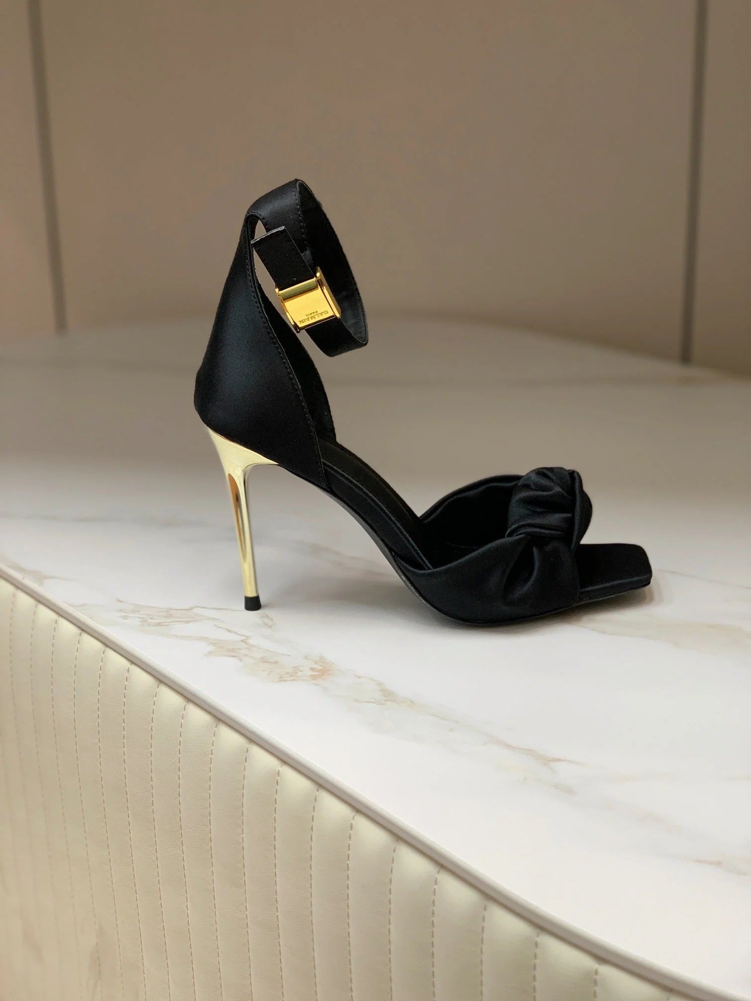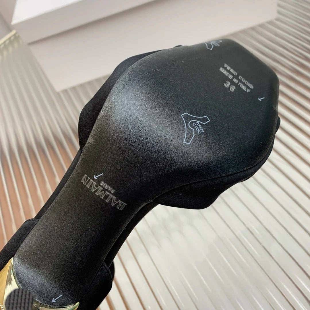 BALMAIN 25S KNOTTED HIGH HEELS 95MM IN BLACK SATIN