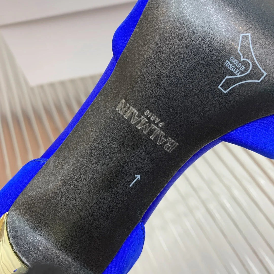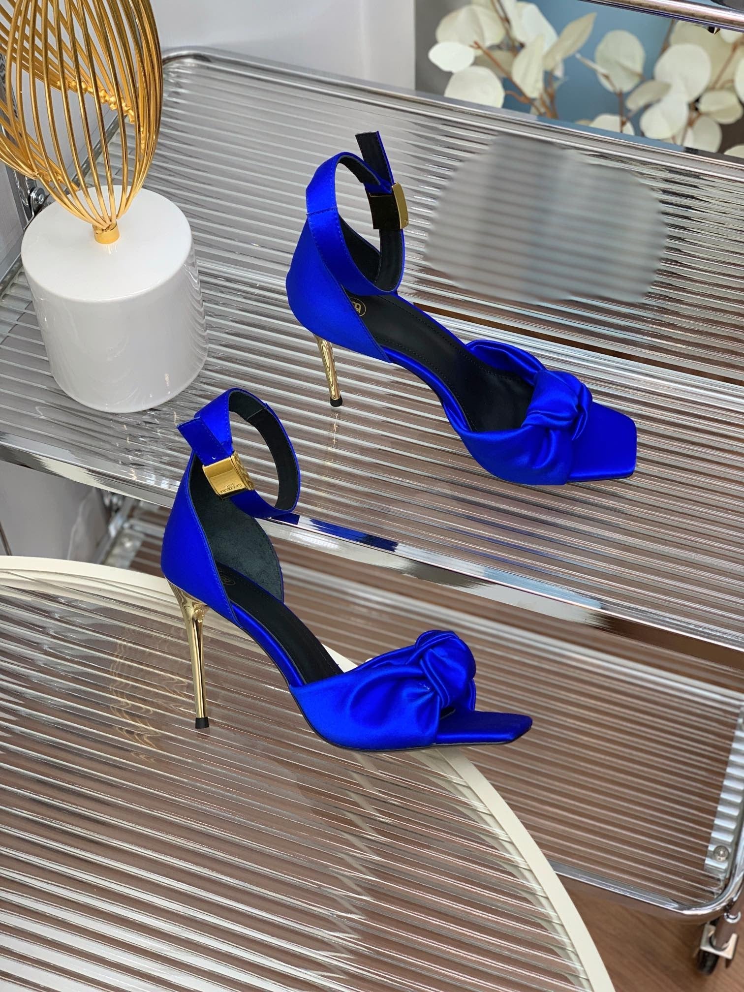 BALMAIN 25S KNOTTED HIGH HEELS 95MM IN DARK BLUE SATIN