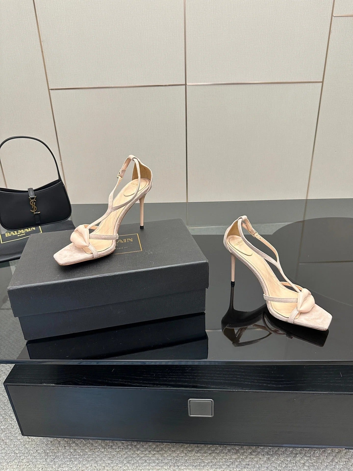 BALMAIN 25S LIPS SANDALS 10 IN BLUSH BEIGE SUEDE