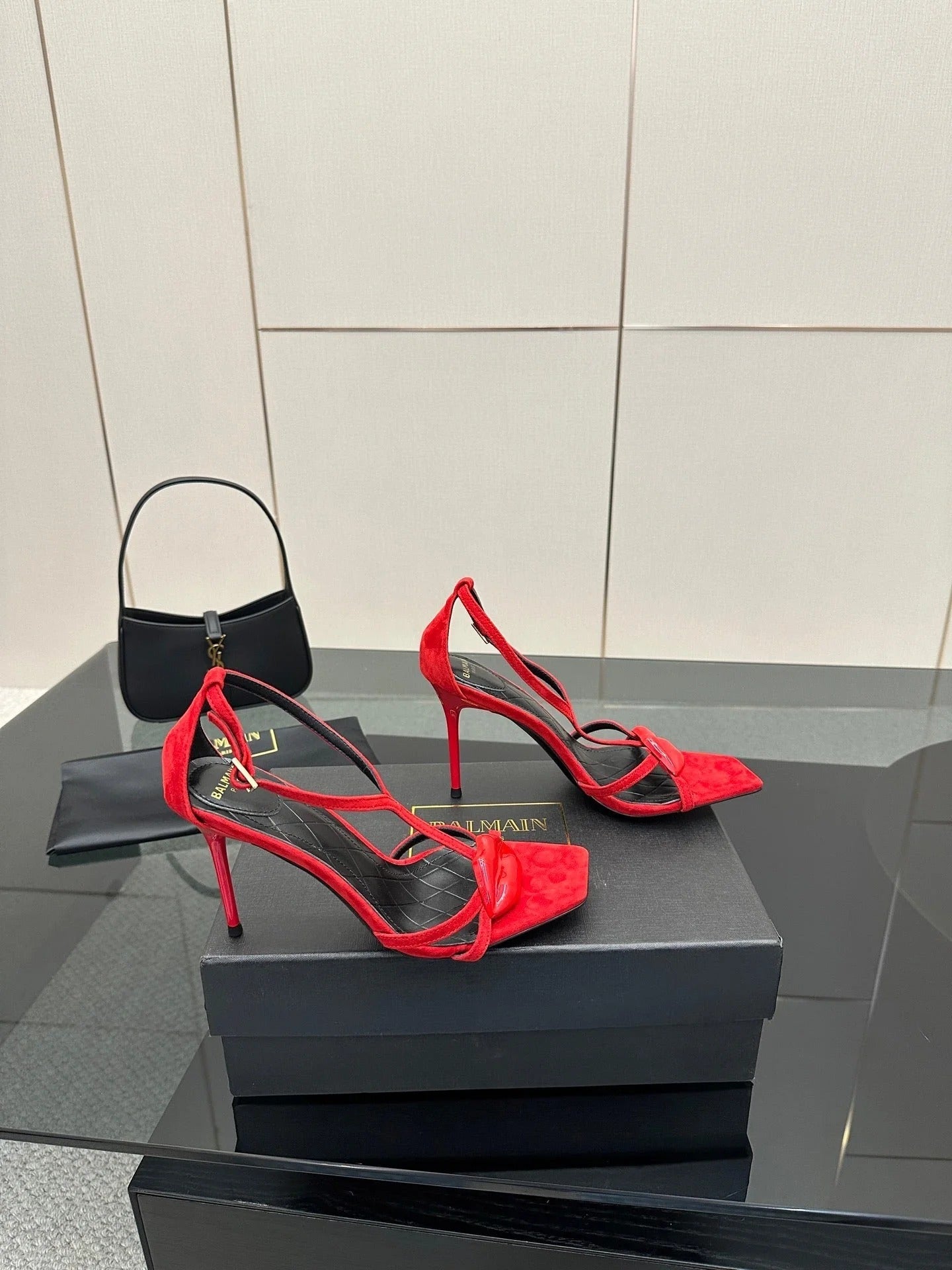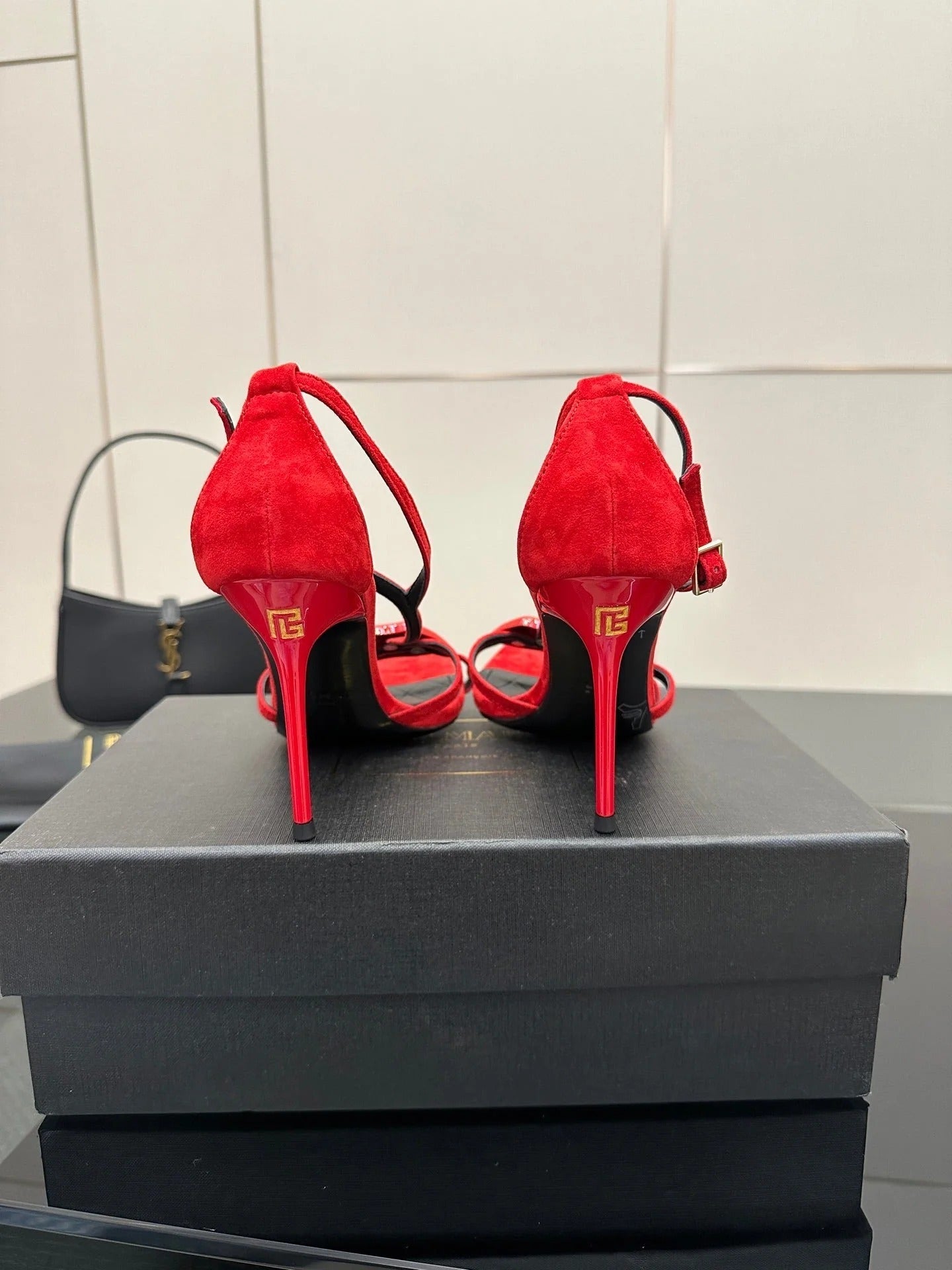 BALMAIN 25S LIPS SANDALS 10 IN CRIMSON RED SUEDE