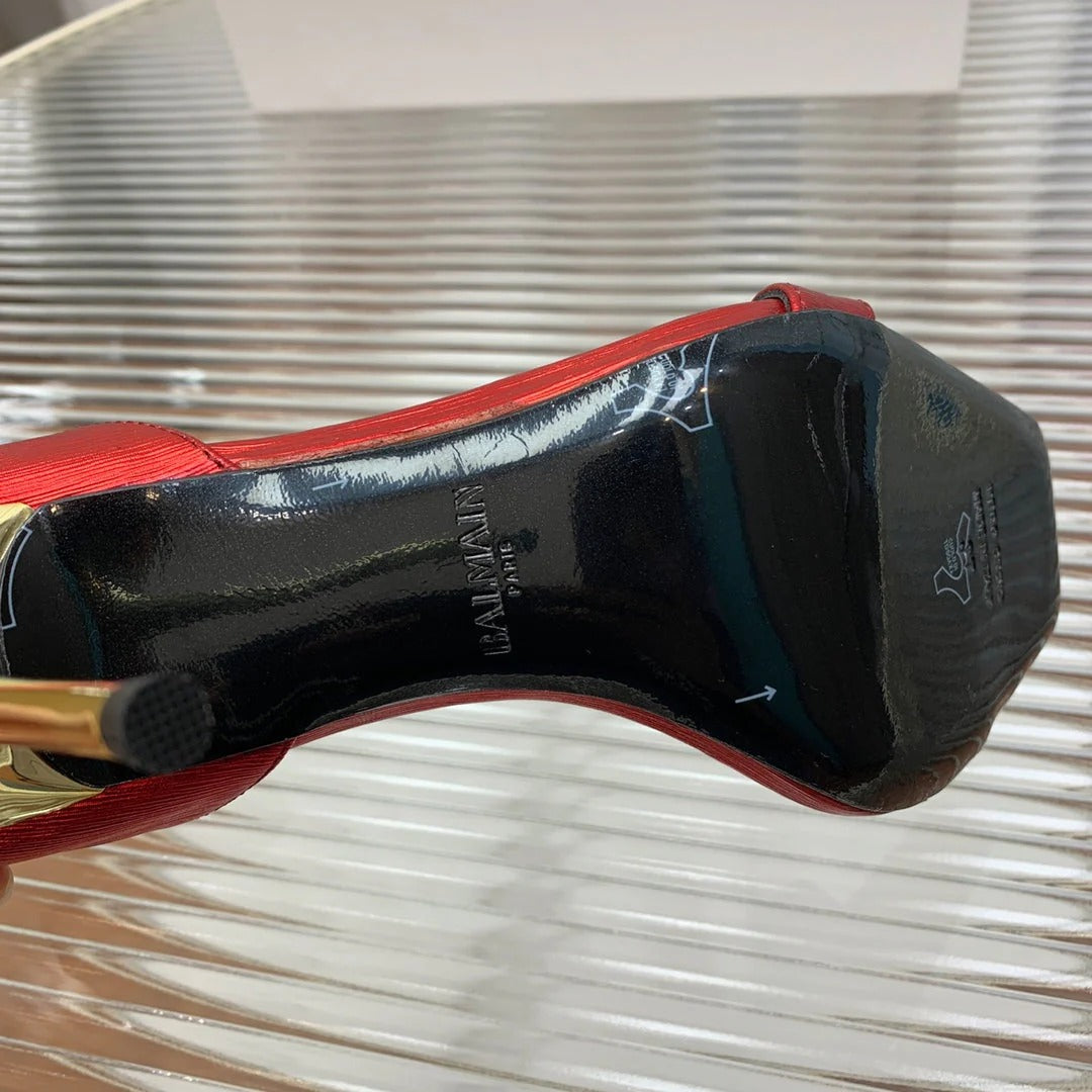 BALMAIN 25S METAL BUCKLE HIGH HEELS 95MM IN CHERRY RED CALFSKIN