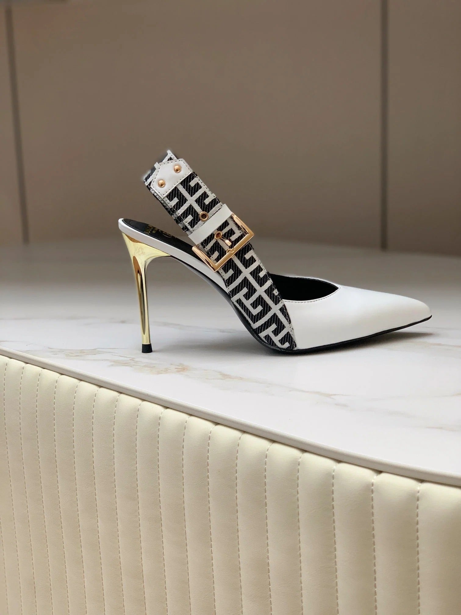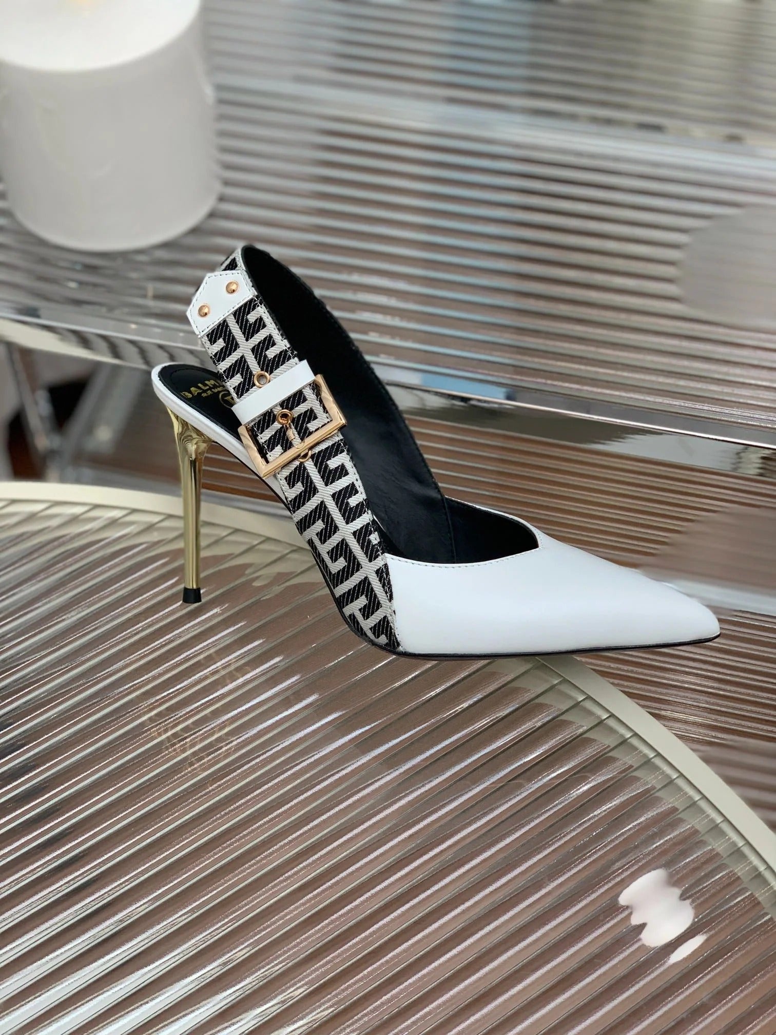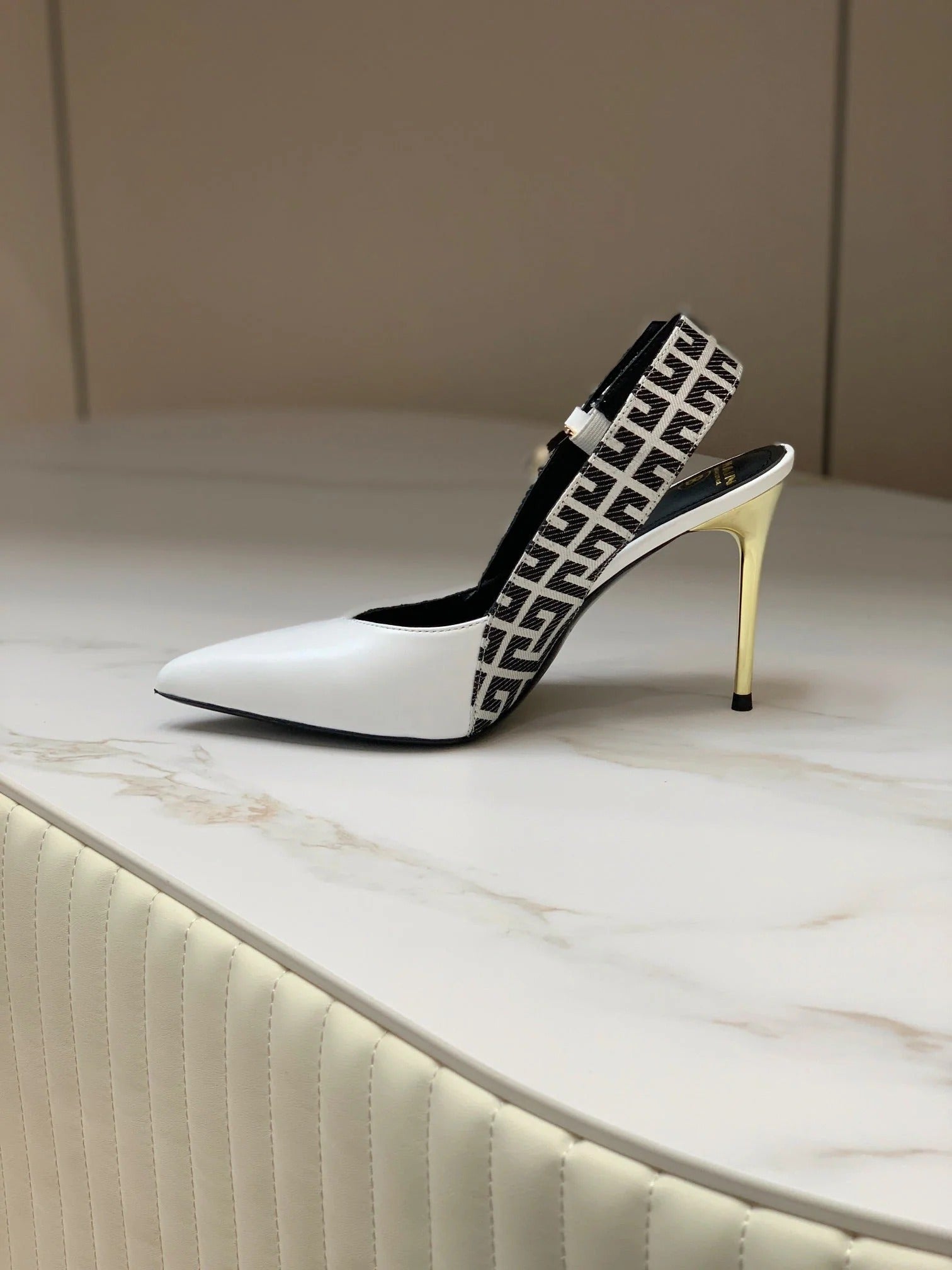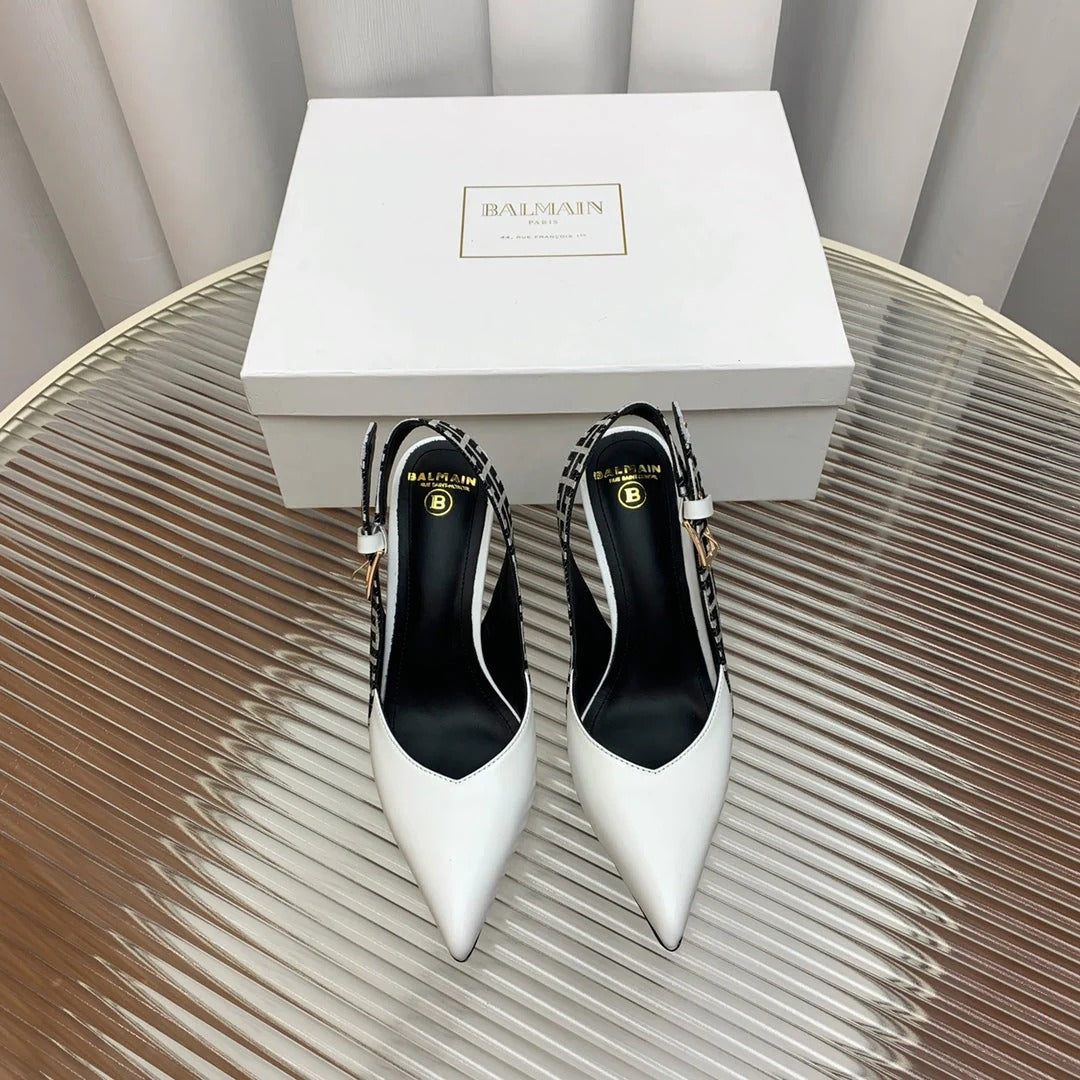 BALMAIN 25S SLINGBACK SHOES 95MM IN WHITE CALFSKIN