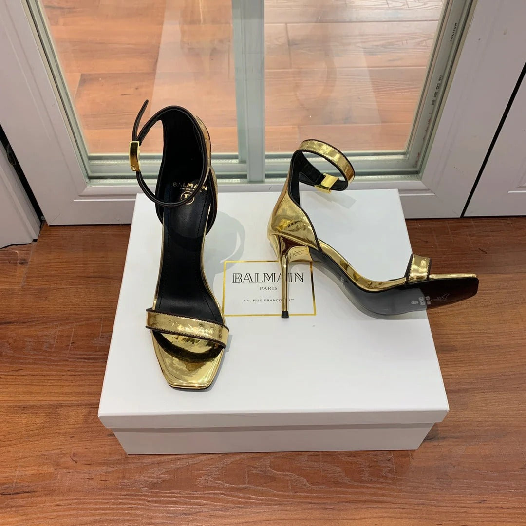 BALMAIN 25S UMA HEELED SANDALS 105MM IN GOLD CALFSKIN