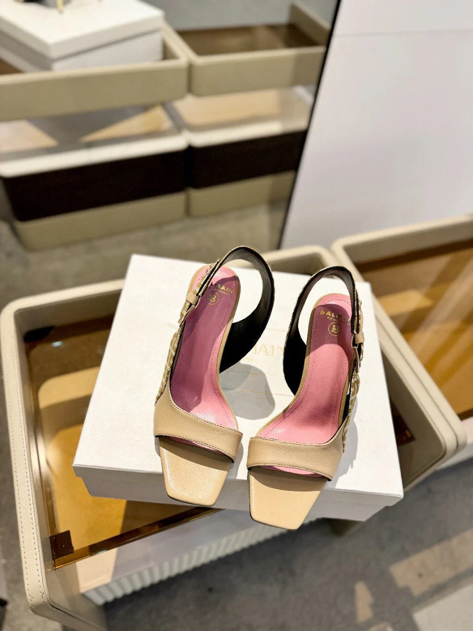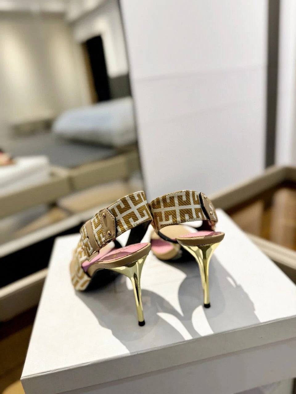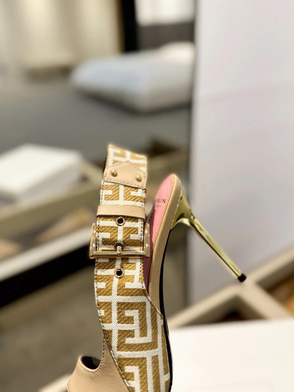 RUBY SANDALS IN BEIGE CALFSKIN AND PB LABYRINTH CANVAS