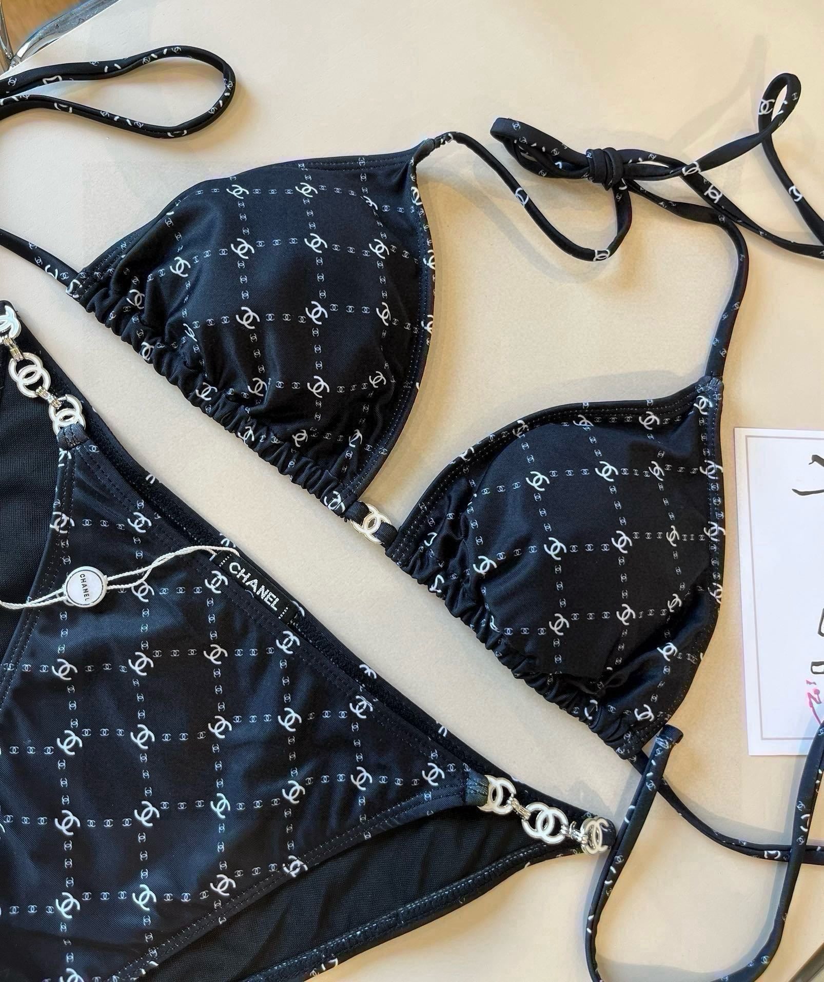 CC BIKINI SWIMSUIT SET IN BLACK AND WHITE PLAID 629230