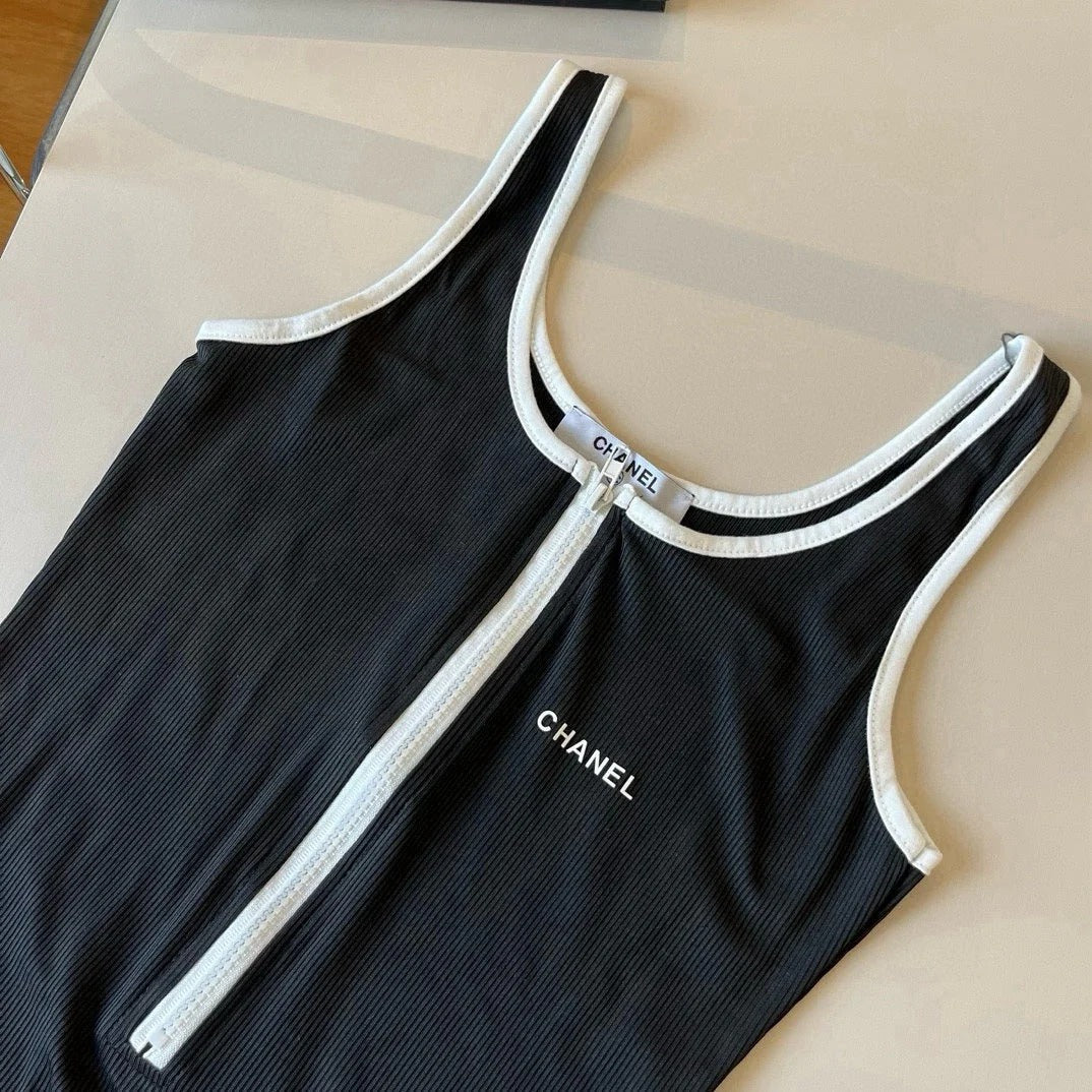 CC BIKINI SWIMSUIT SET IN BLACK AND WHITE TRIM 625973