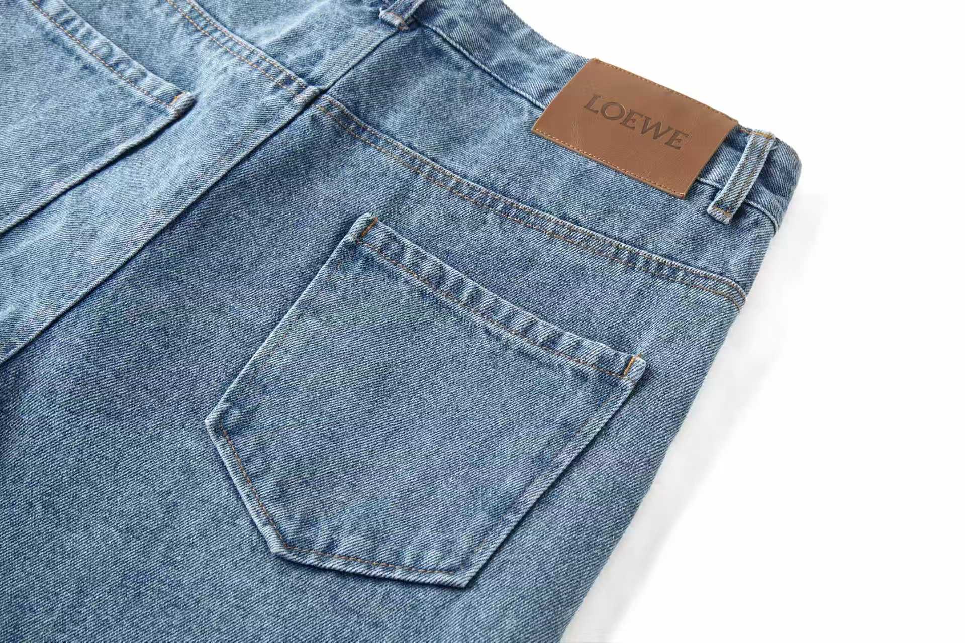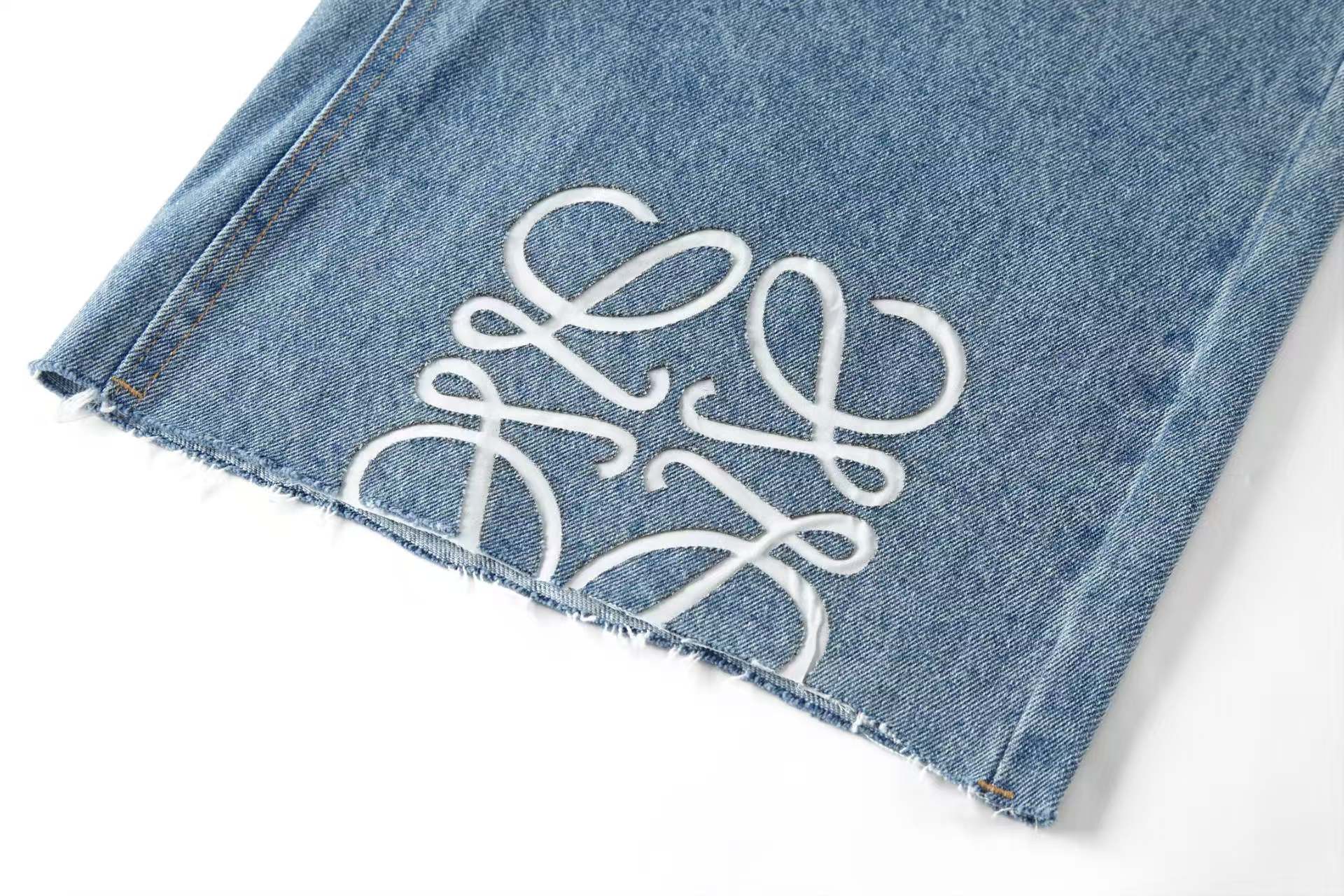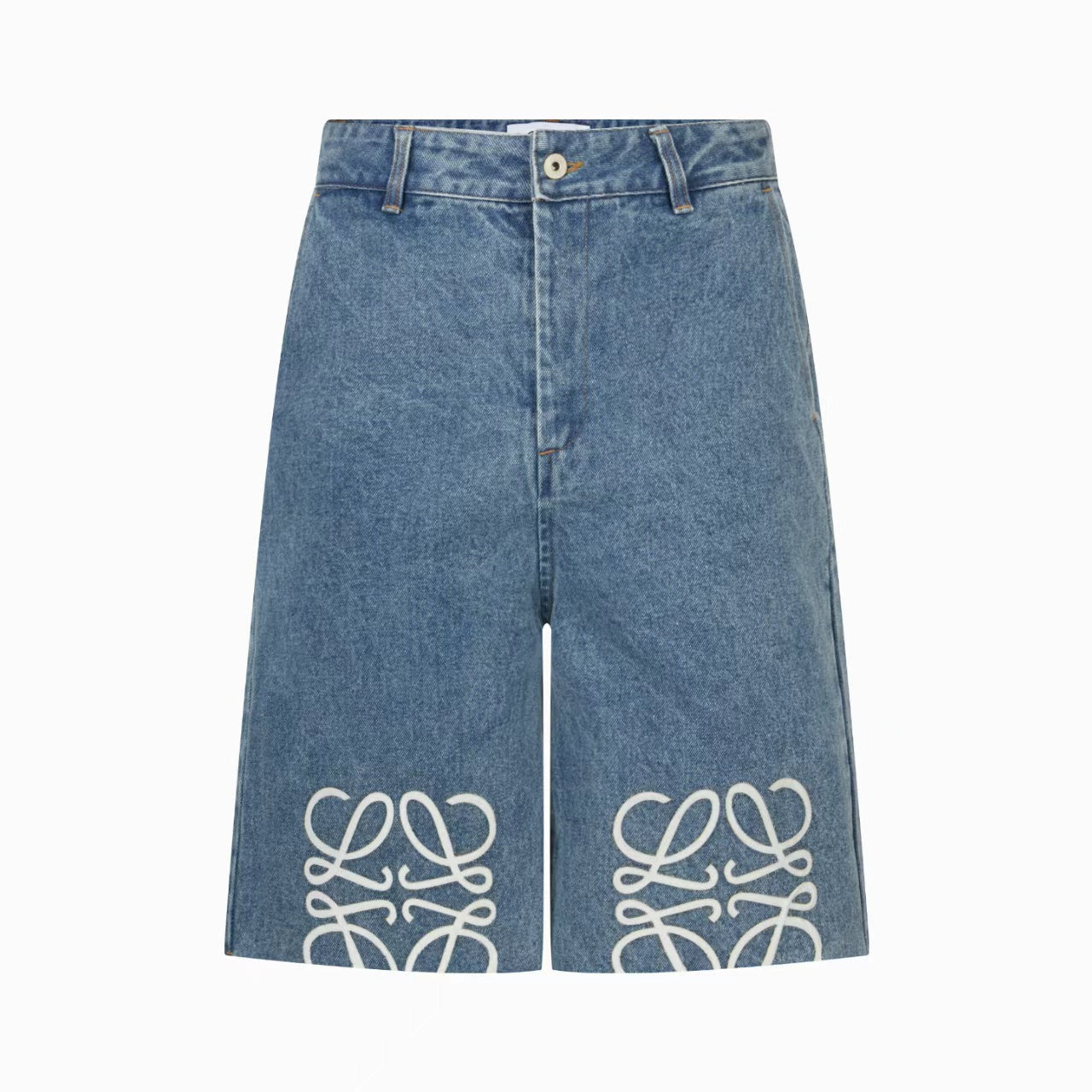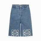 LOEWE ANAGRAM FRAYED DENIM SHORTS