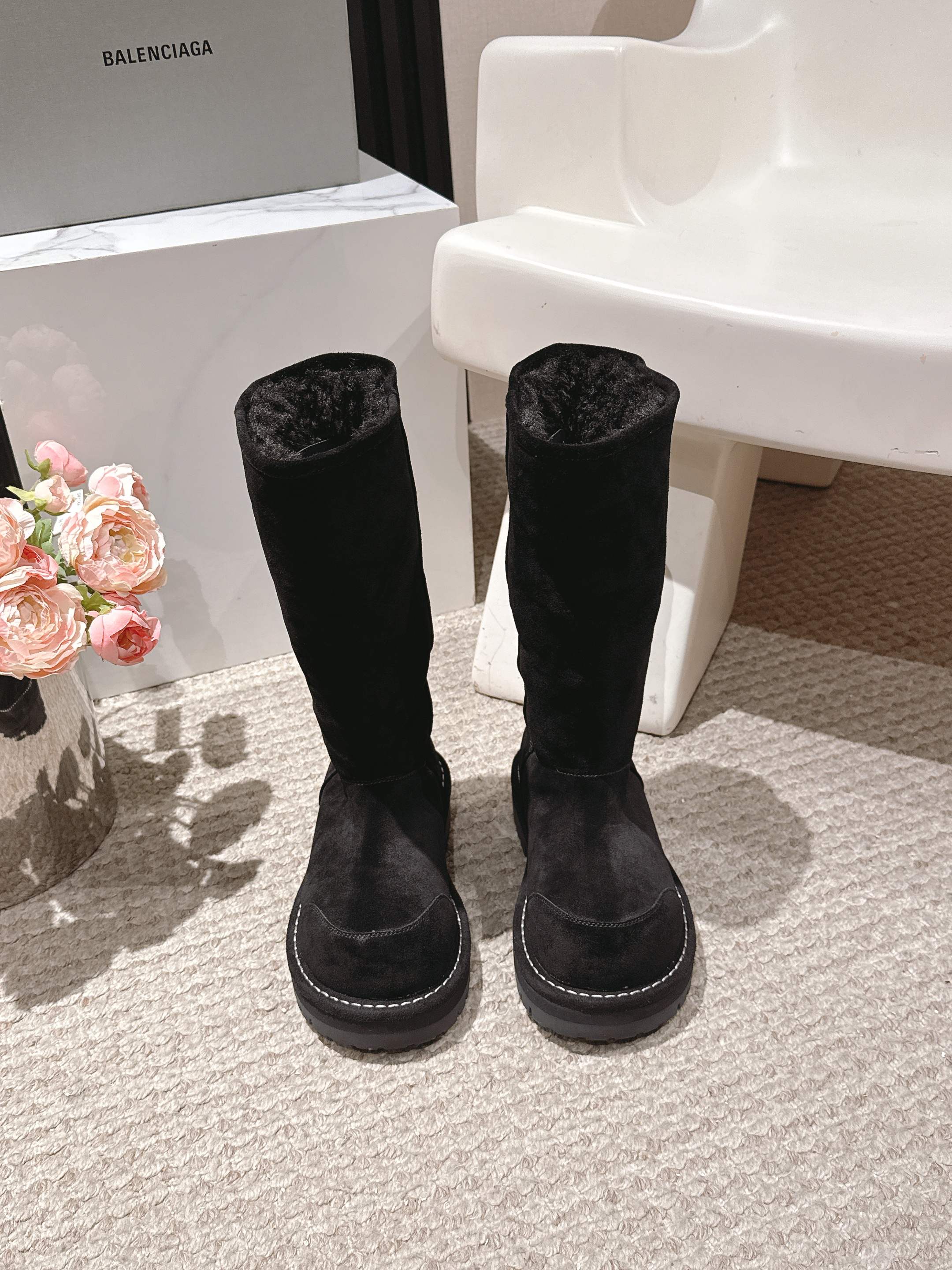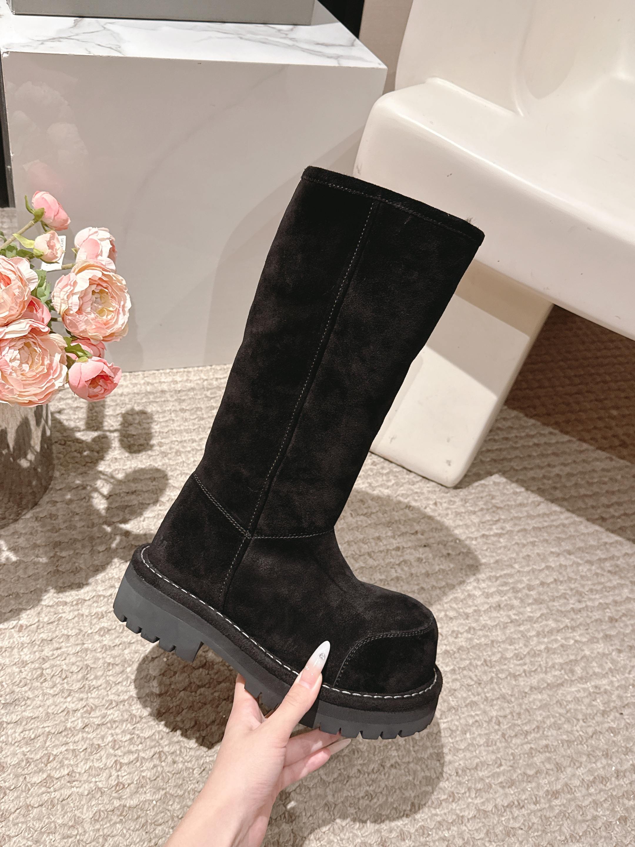 Balenciaga 25s snow boots black suede wool 467188