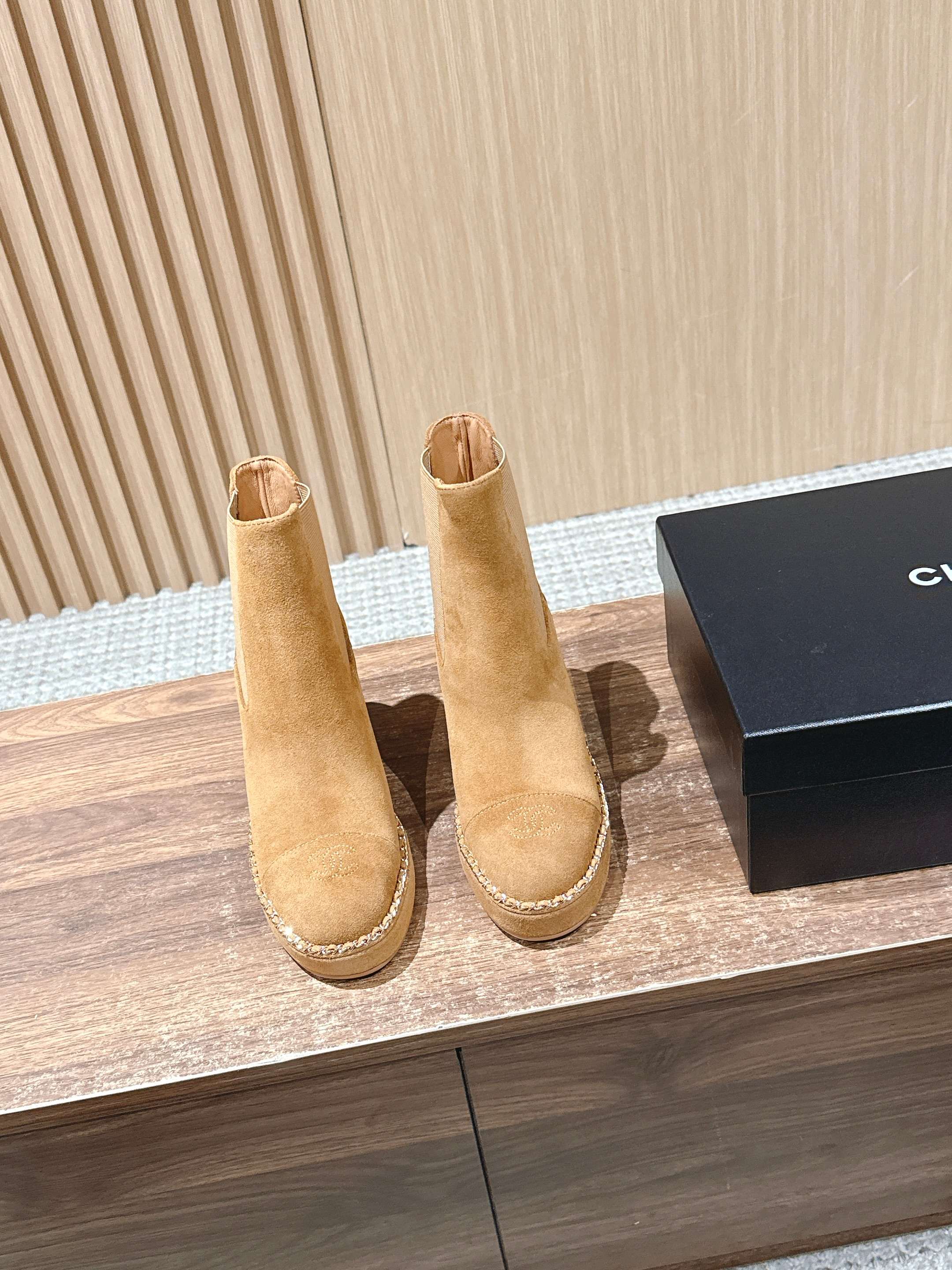 CC 25 Chelsea Ankle Boots With Chain 85mm Beige Suede 428221