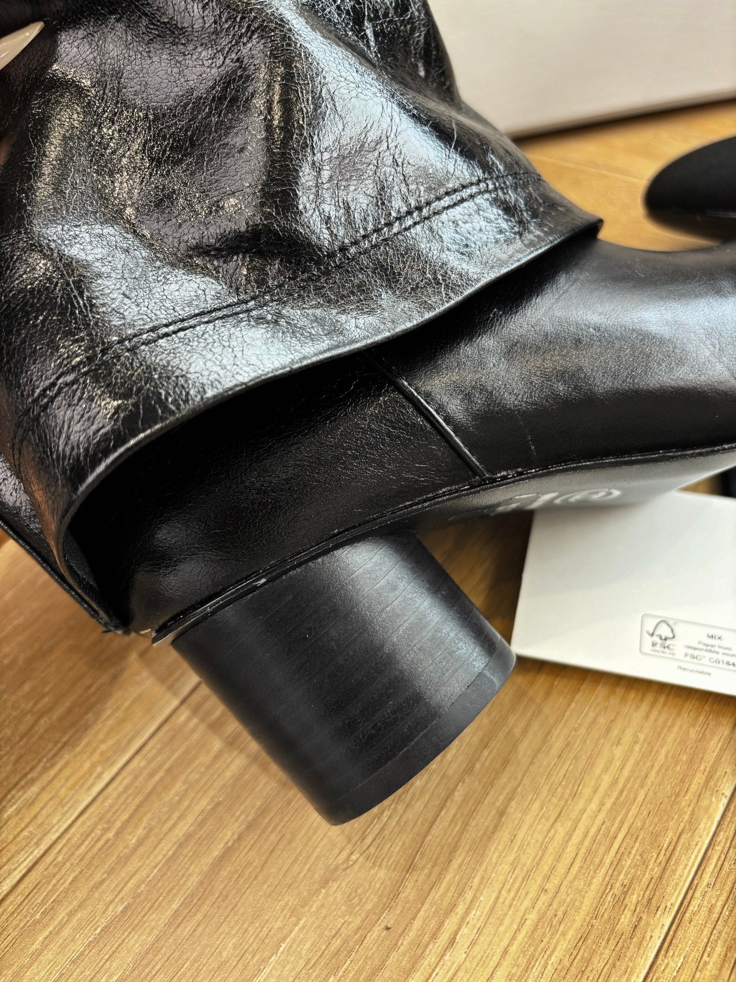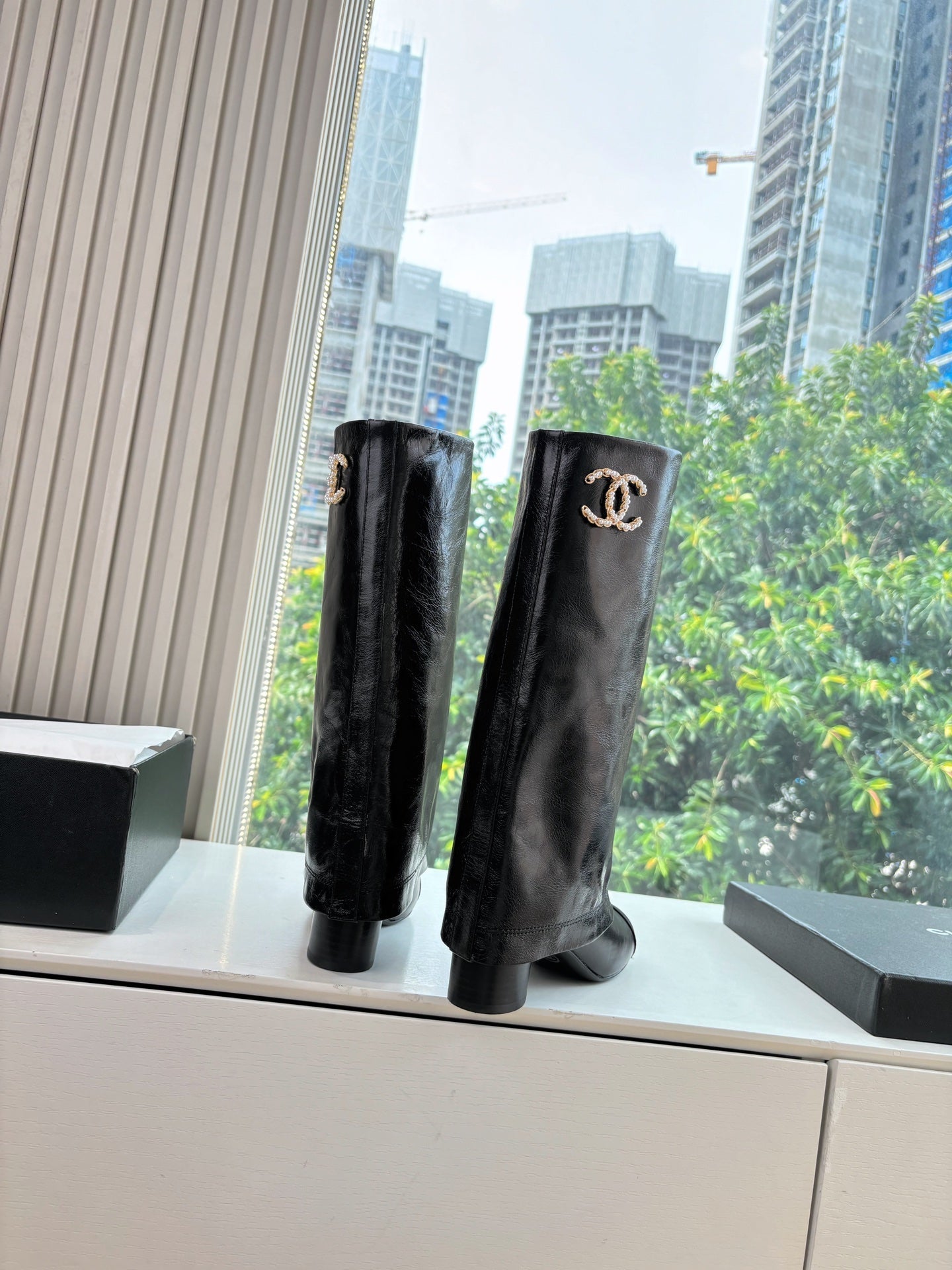 CC 25 High Boot Black Aged Calfskin Grosgrain 430338