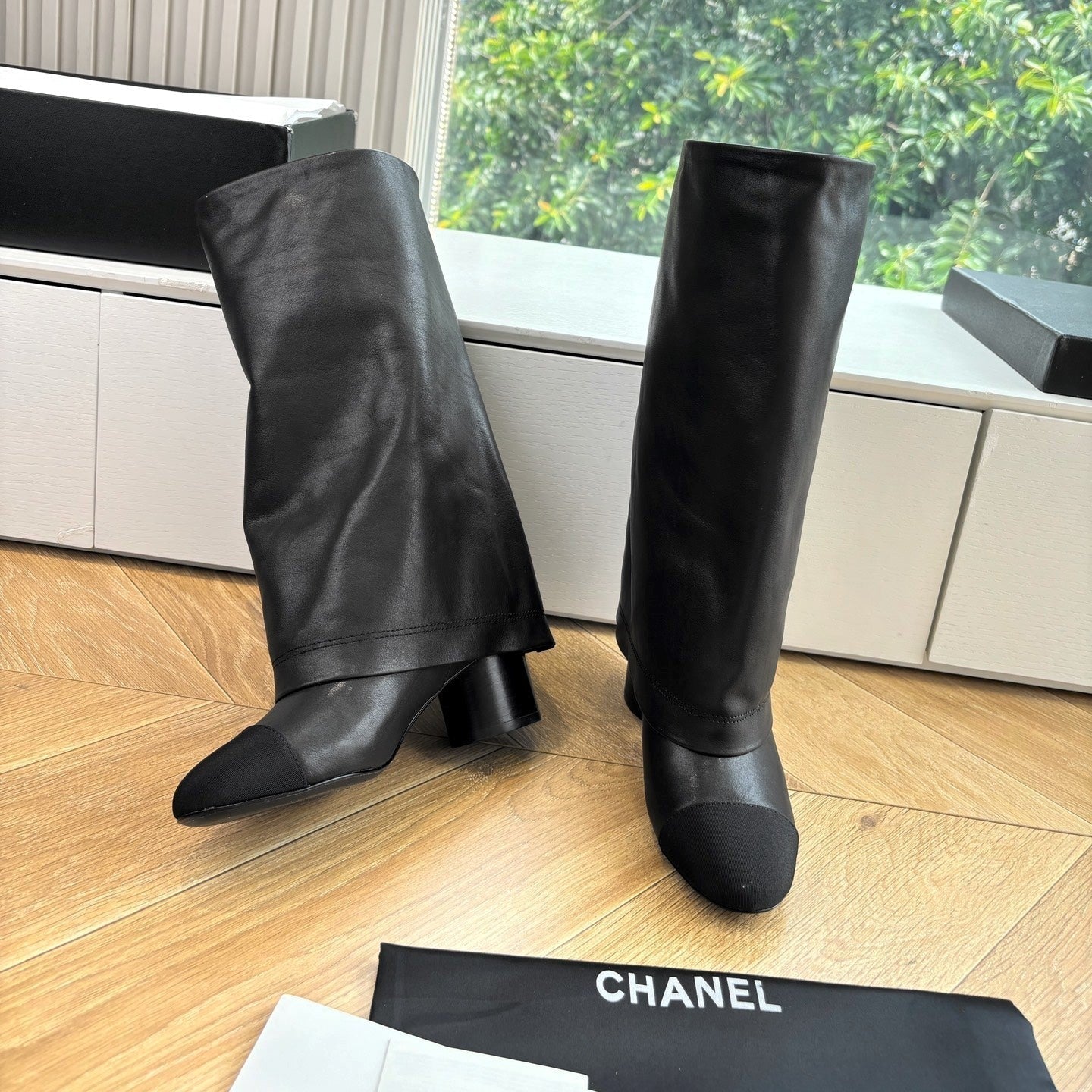CC 25 High Boot Black Calfskin Grosgrain 430335