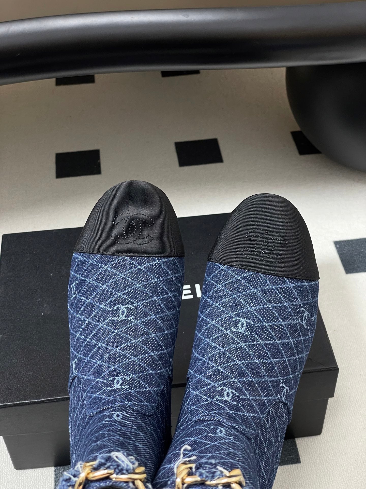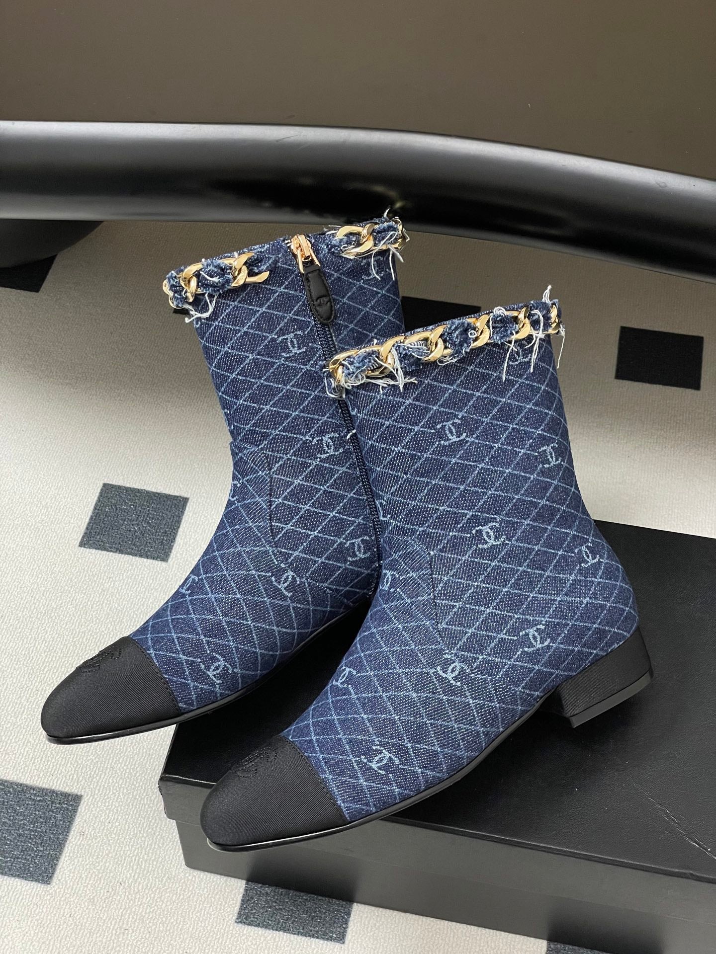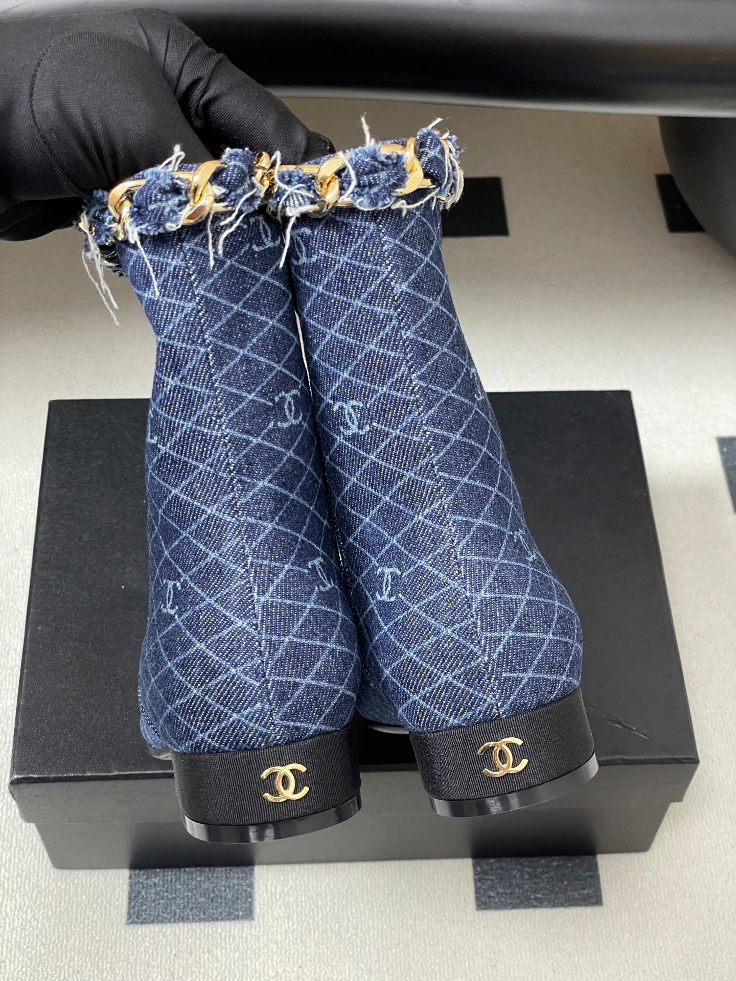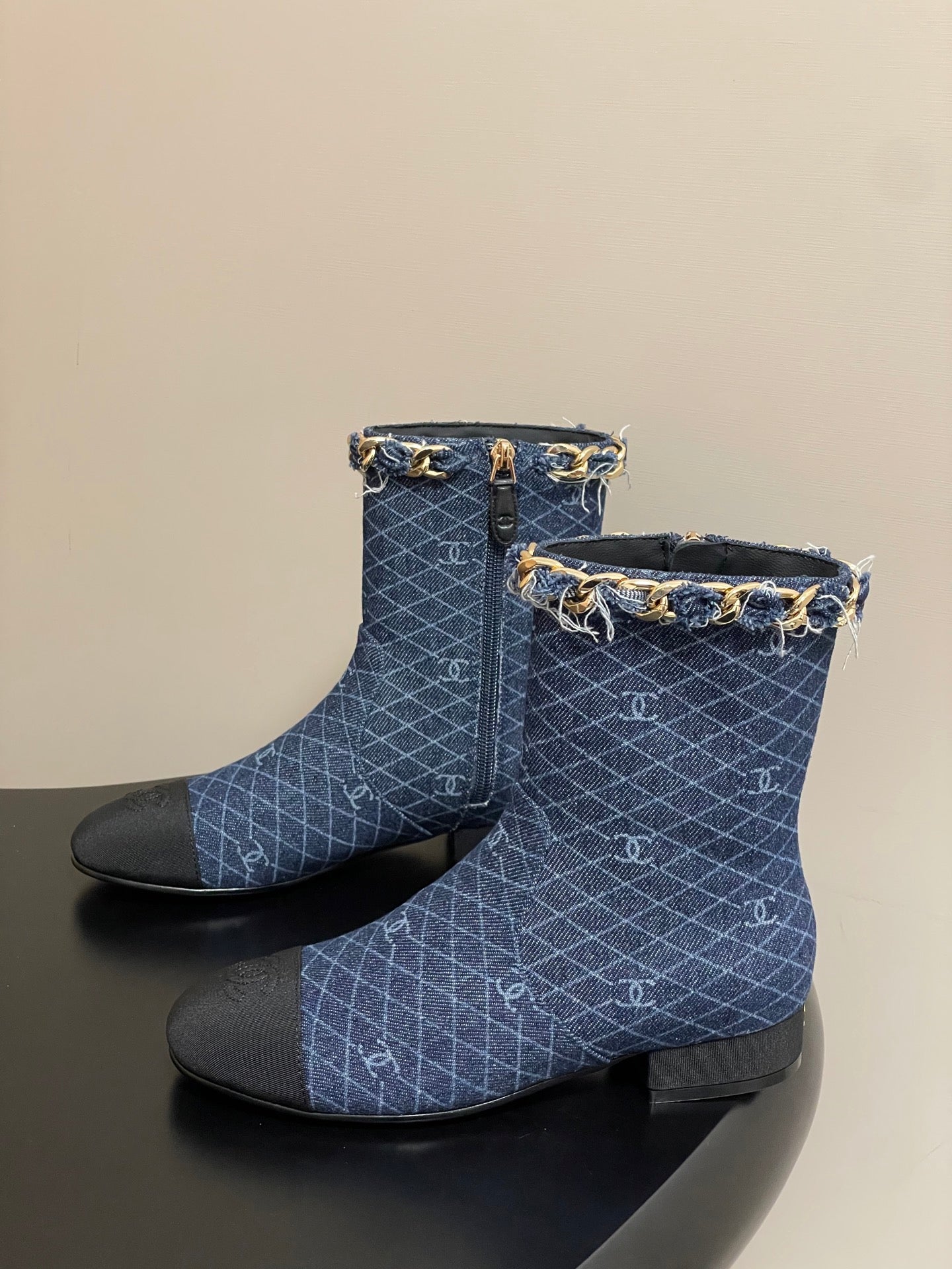 CC 25B Chain Short Boot 25mm Black Blue Denim 423150