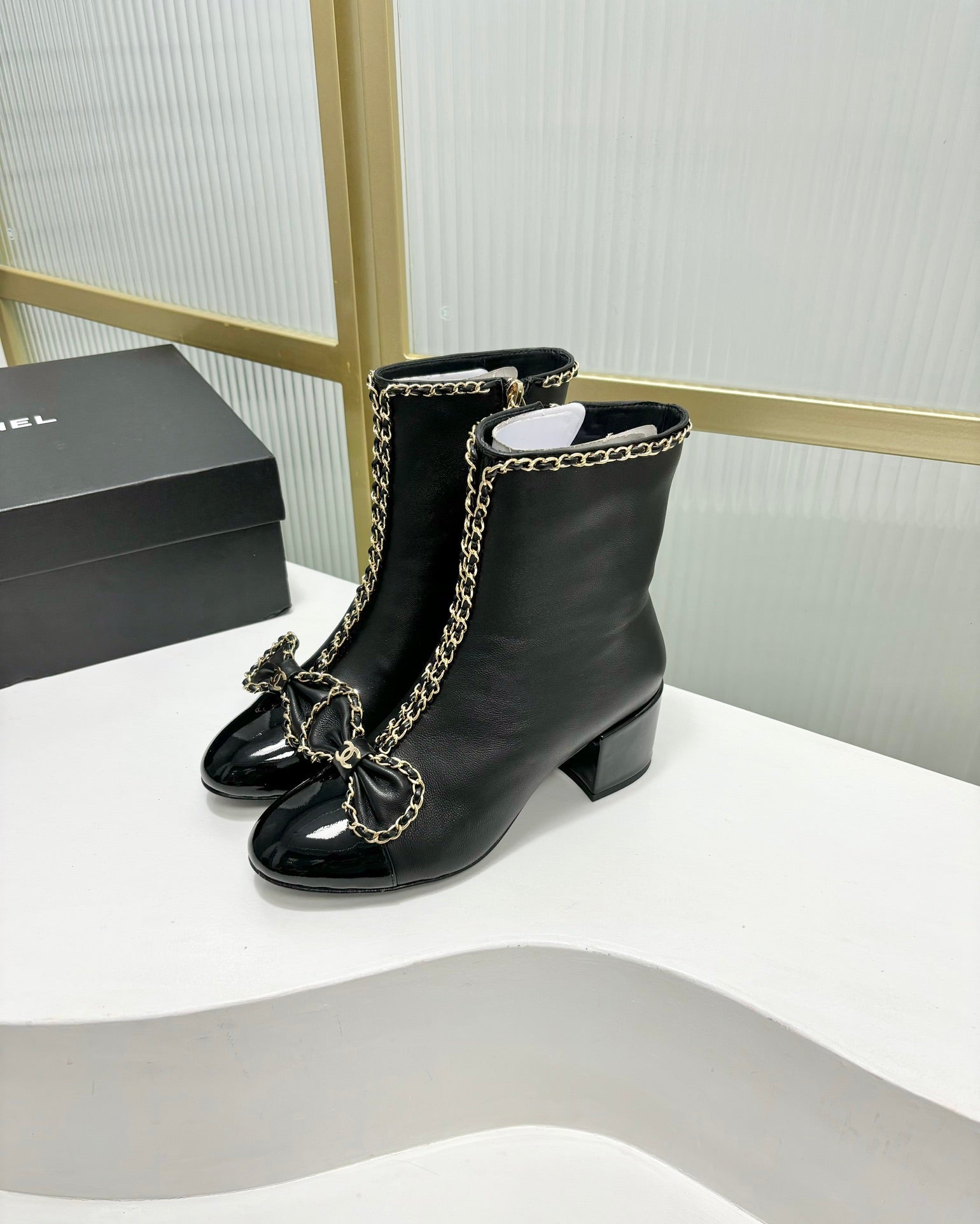 CC Ankle Boot 65 Black Calfskin Patent Calfksin Leather Strap