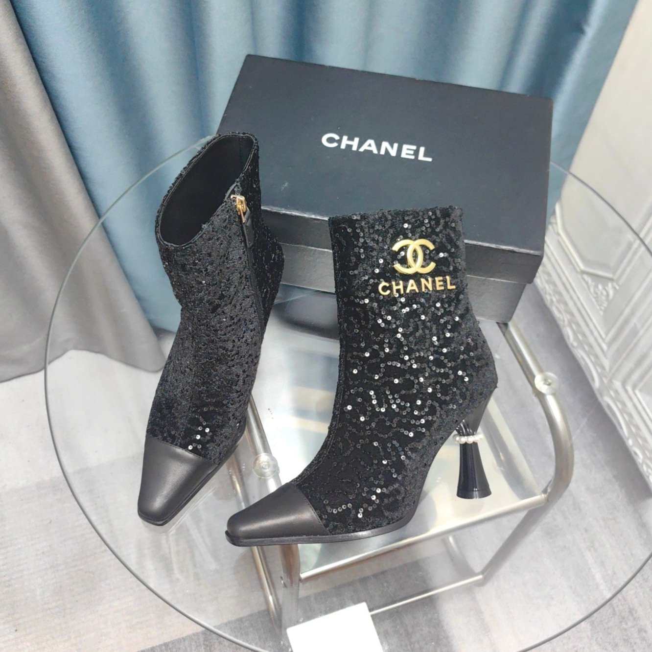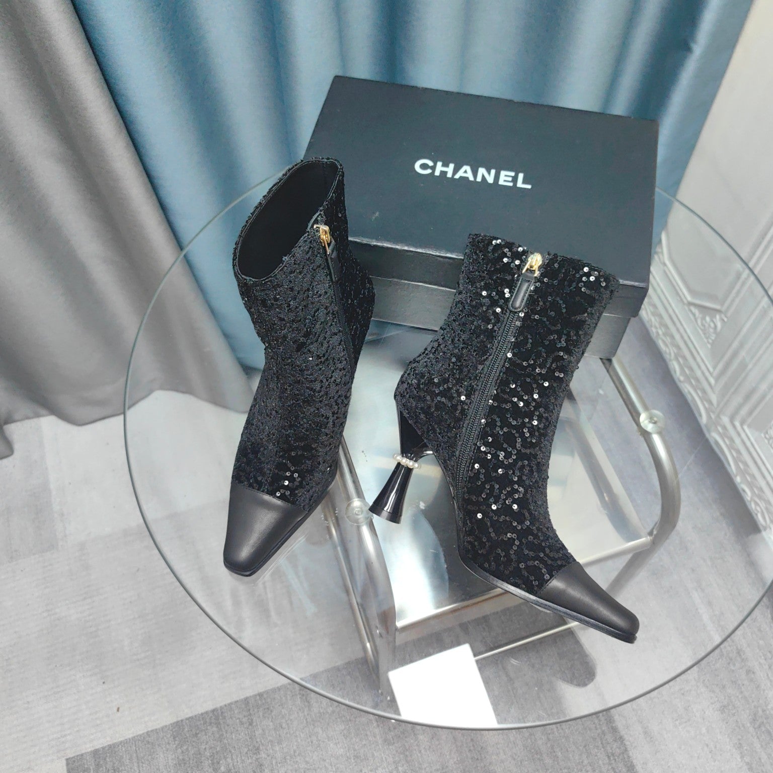 CC Ankle Boots Black Beaded Fabric And Cowhide