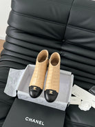 CC SHORT BOOTS 65 MM IN SEPIA BEIGE MIX BLACK QUILTED PATTERN LAMBSKIN