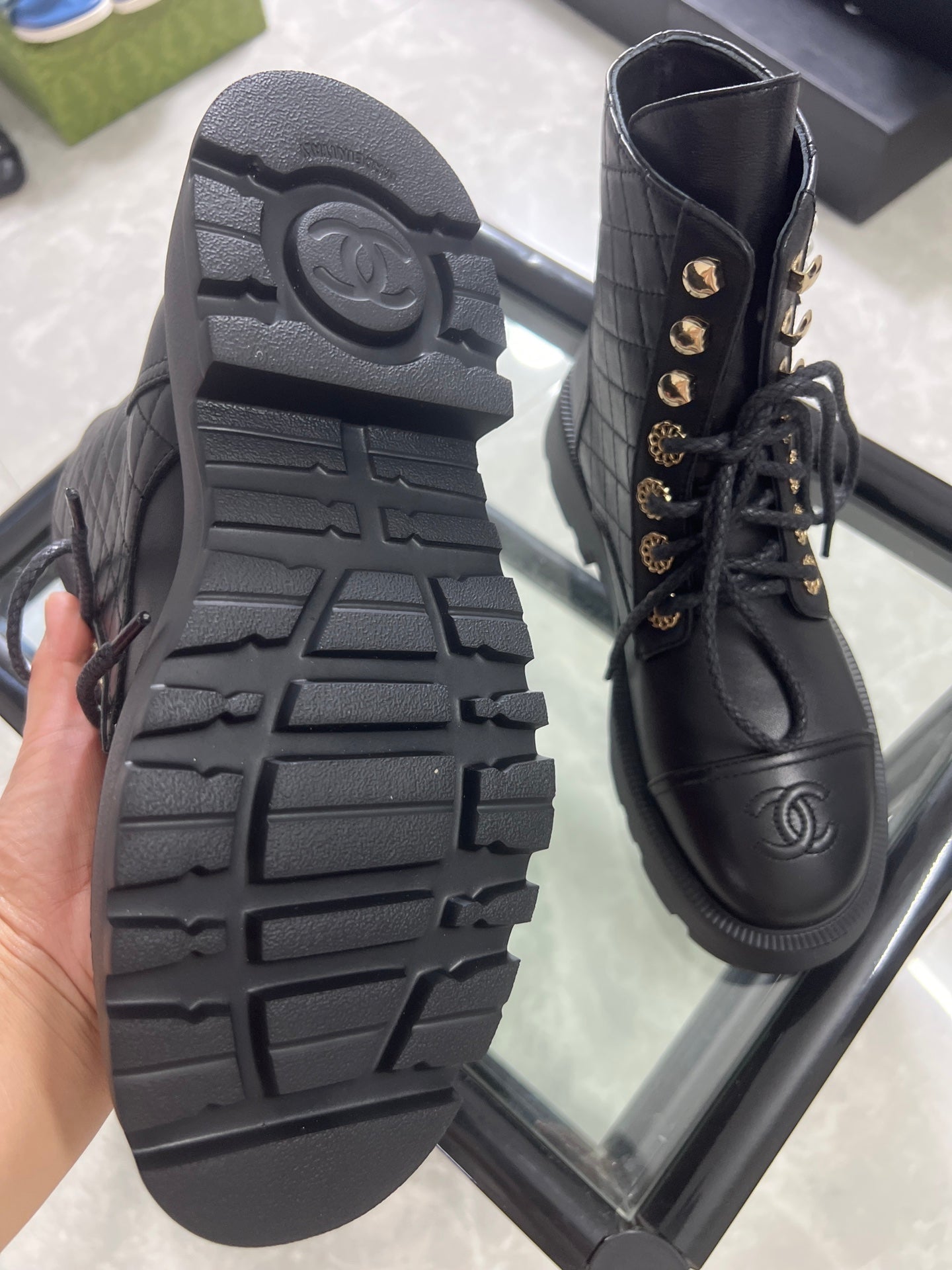 CC Combat Boots Black Quilted Lambskin 944572