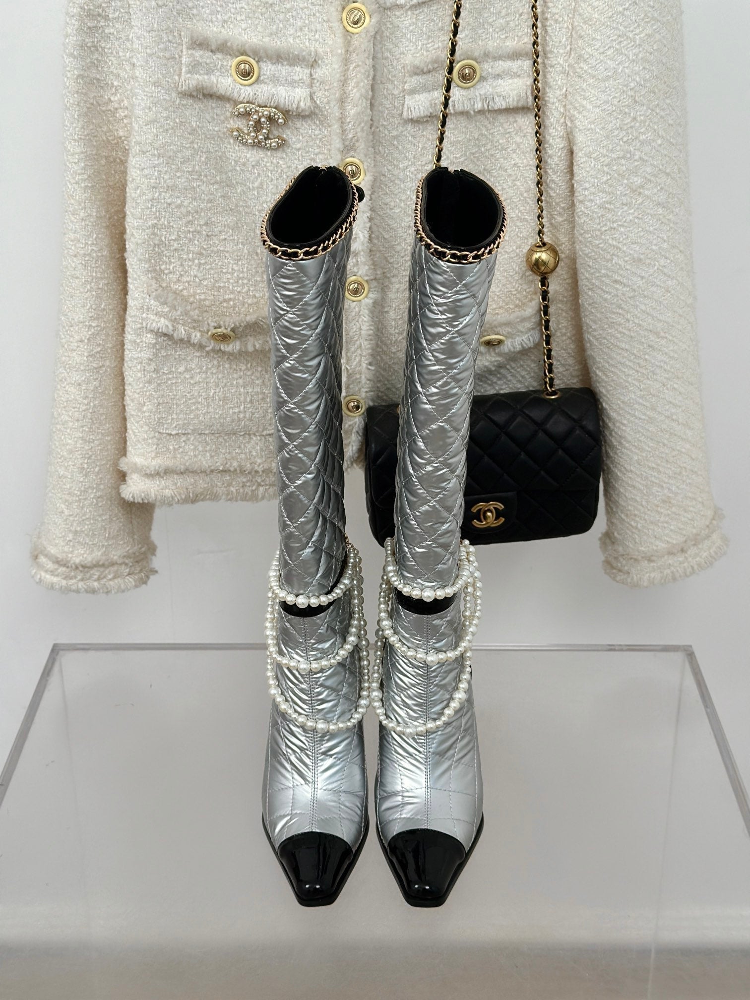 CC High Boots 80mm Silver Wrinkled Quilted Calfskin