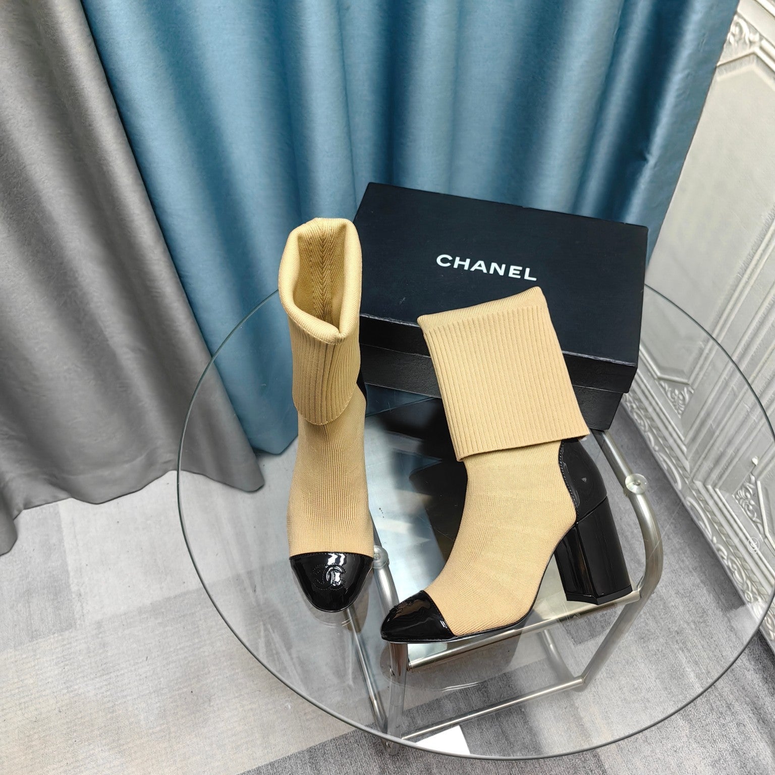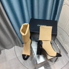 CC Short Boots 80mm Beige Wool Fabric And Lambskin