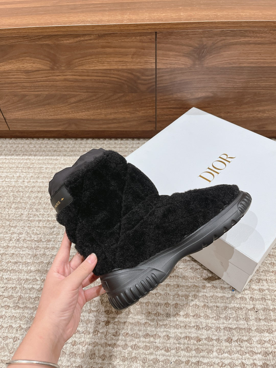 CD Ankle Boots Black Fleece And Windbreaker Fabric