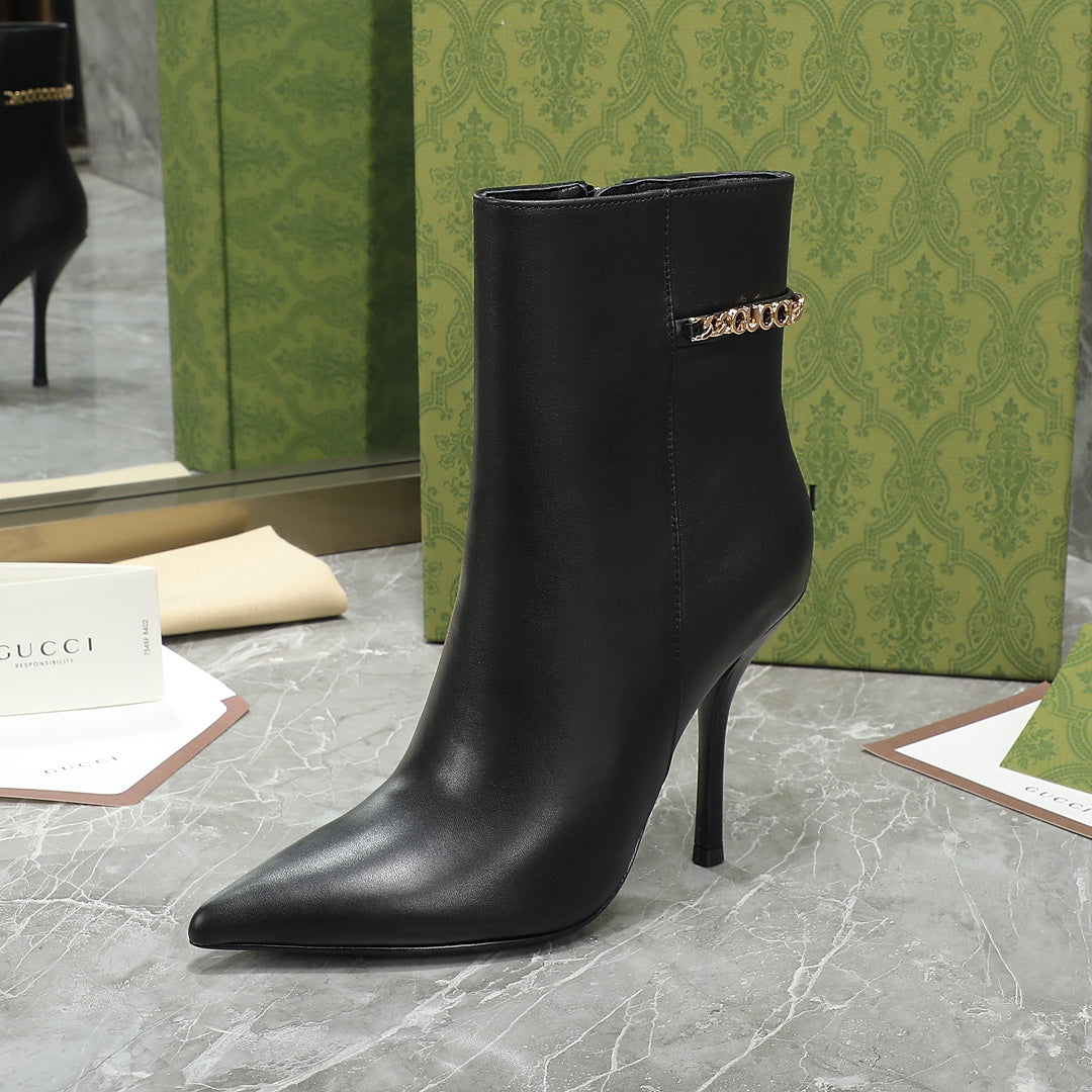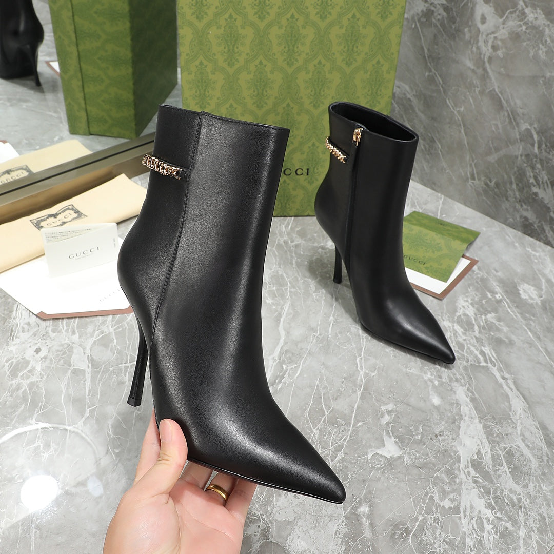 GG Ankle Boots with Chain 105mm Black Calfskin 432682