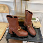 GG HORSEBIT ANKLE BOOTS IN RED BROWN SHEEPSKIN