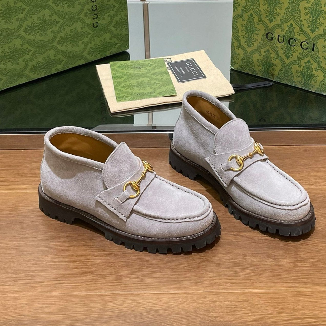 GG WOMEN'S HORSEBIT ANKLE BOOT IN KHAKI BROWN SUEDE