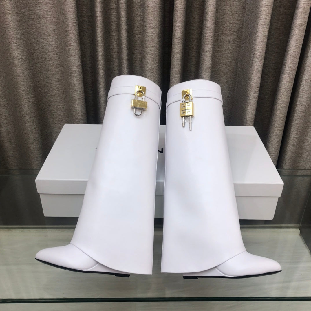 Givenchy Shark-Lock Knee-High Boots White Cowhide 543344
