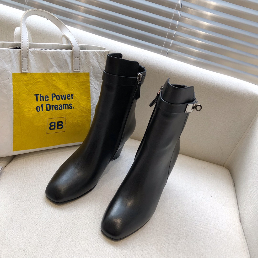 HM Classic Kelly High-Heeled Boots Black Cowhide 546214