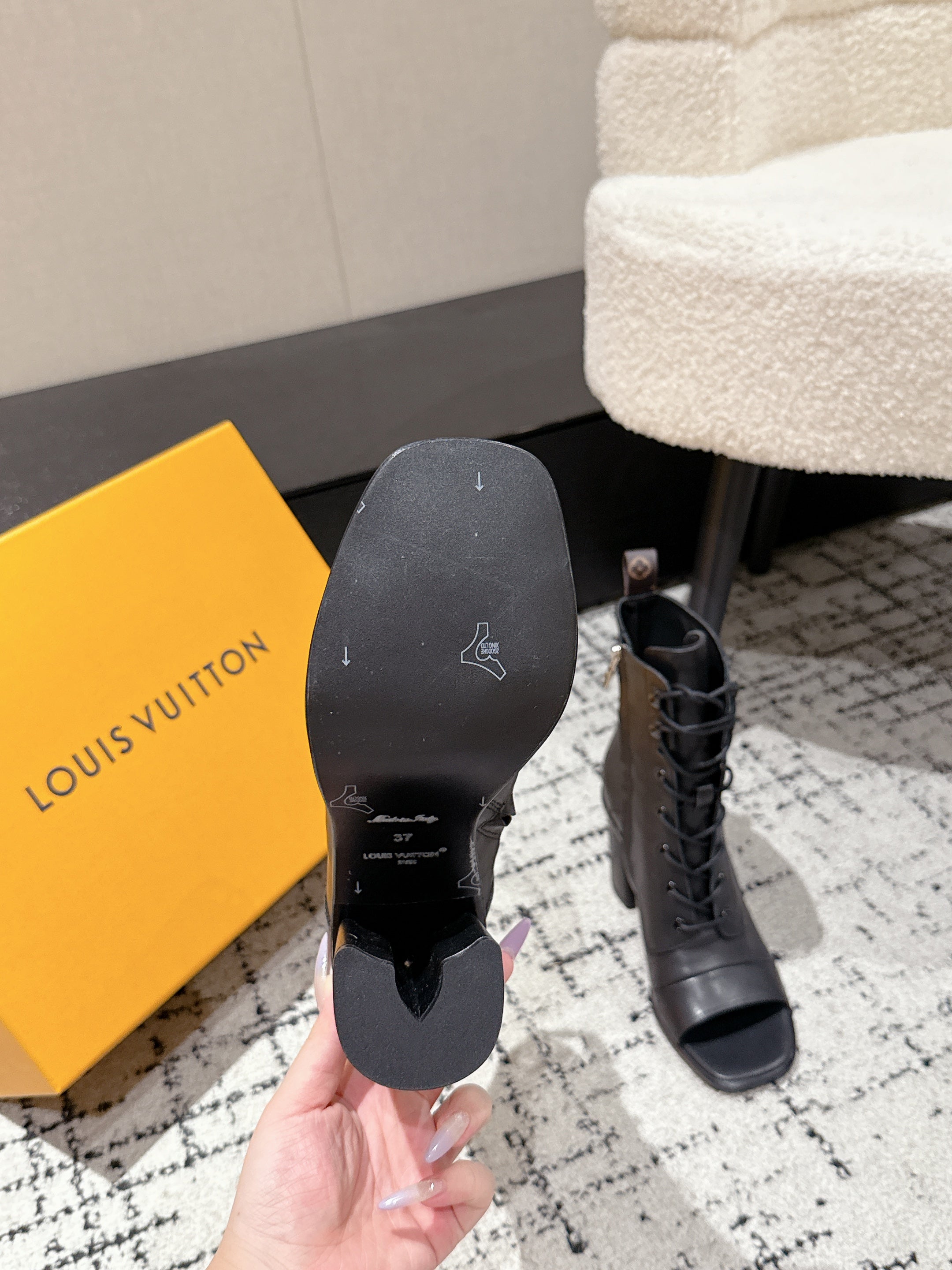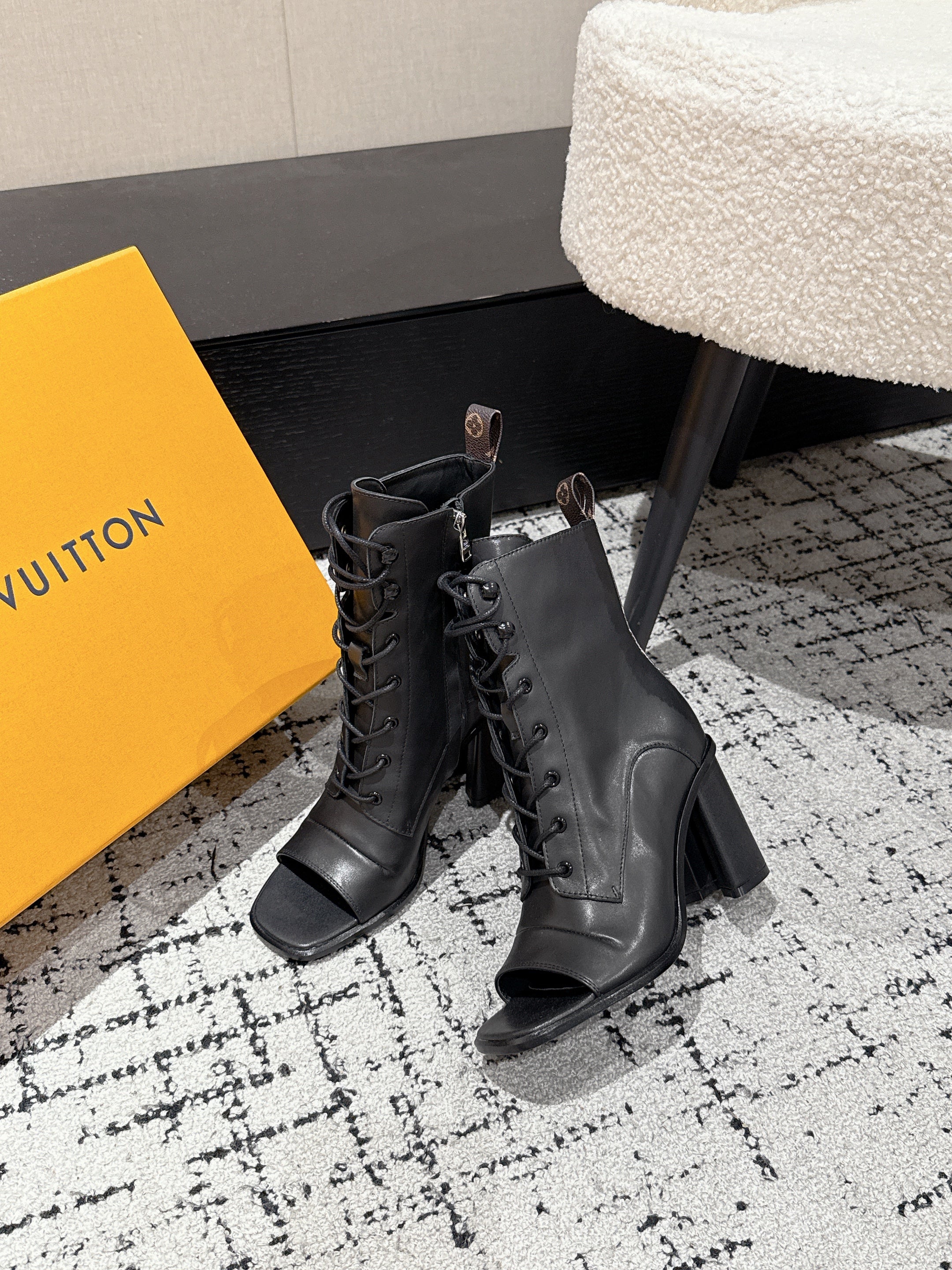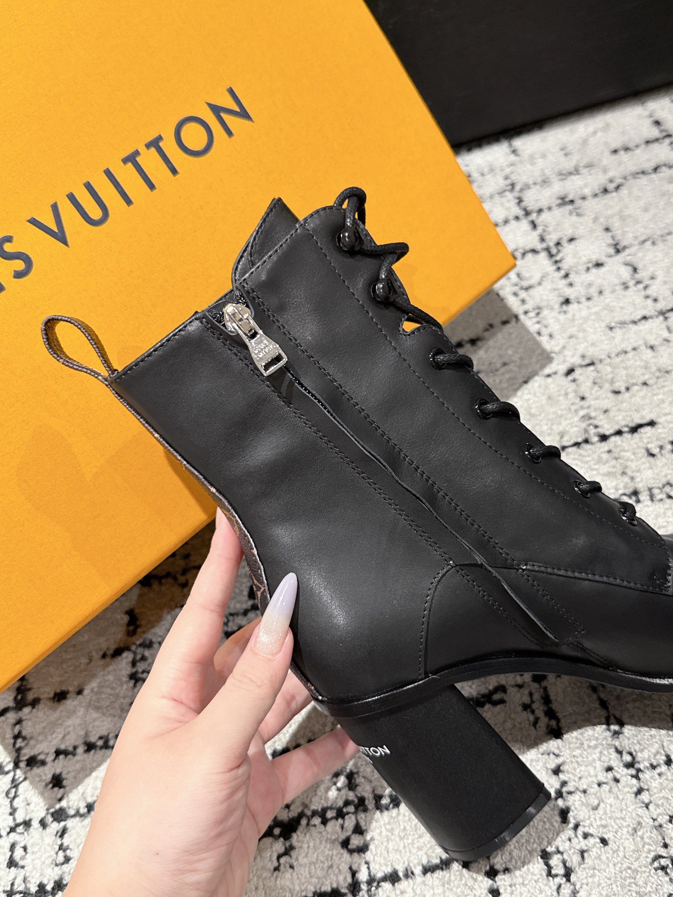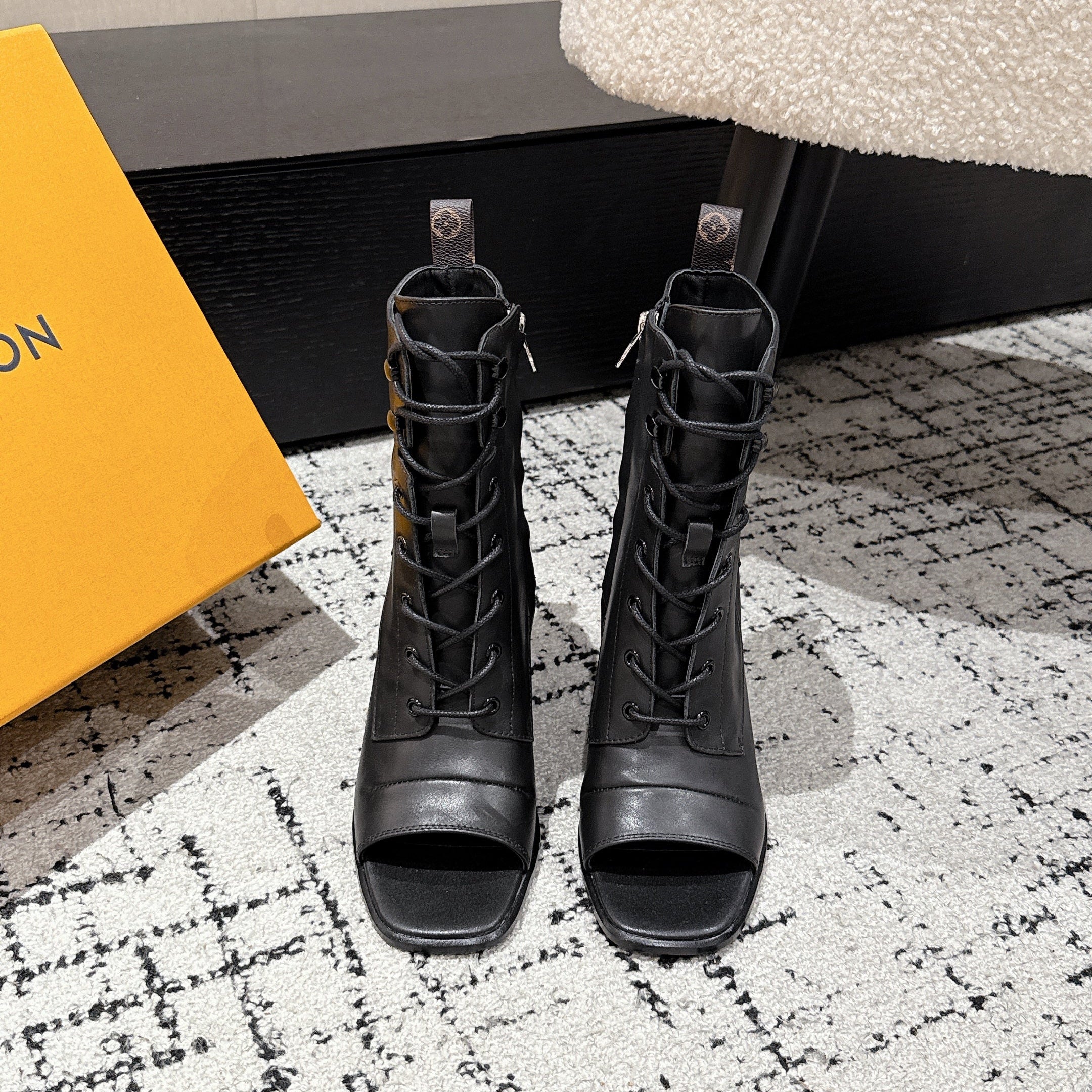 LV Berlin Boots 85mm Ecru Black Smooth Calfskin 514457