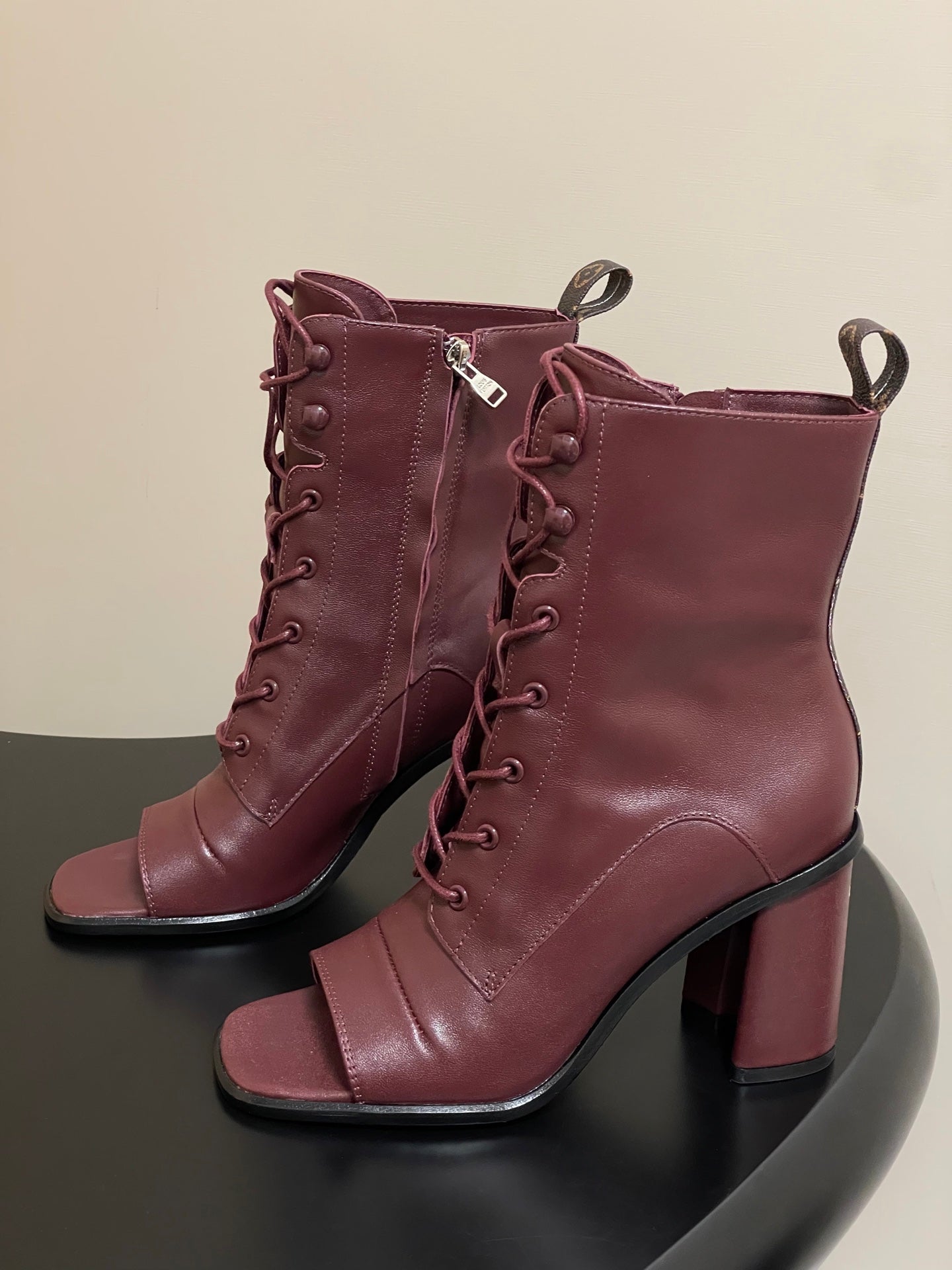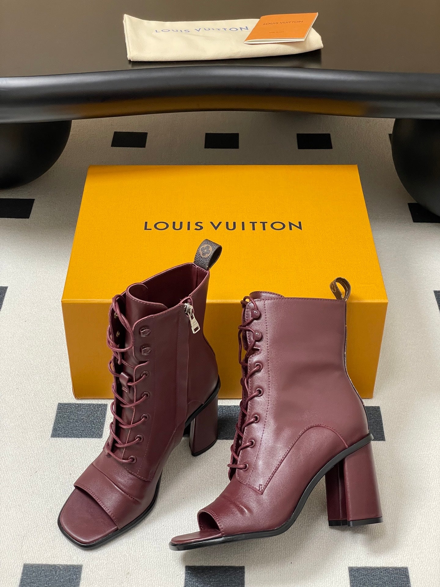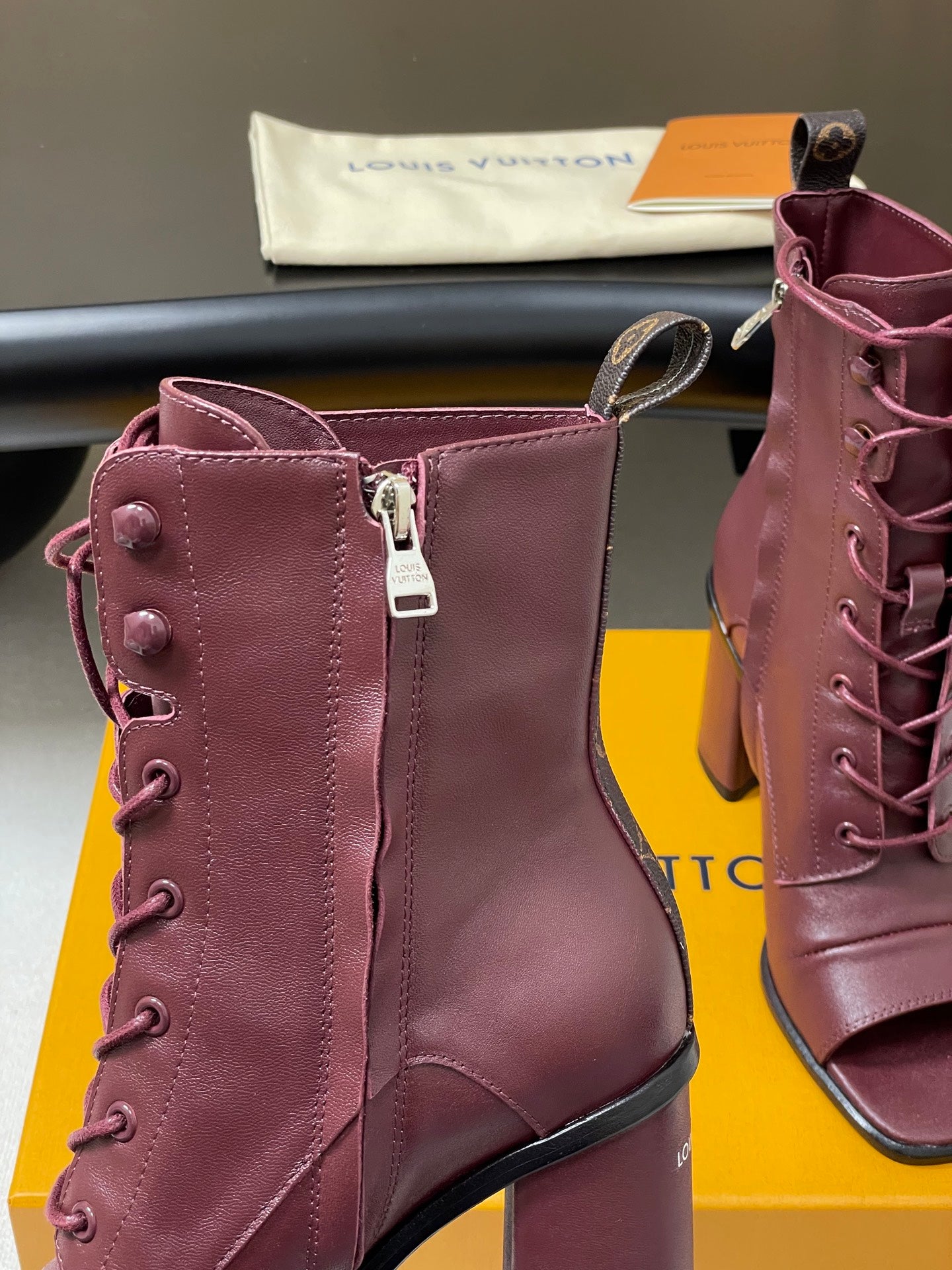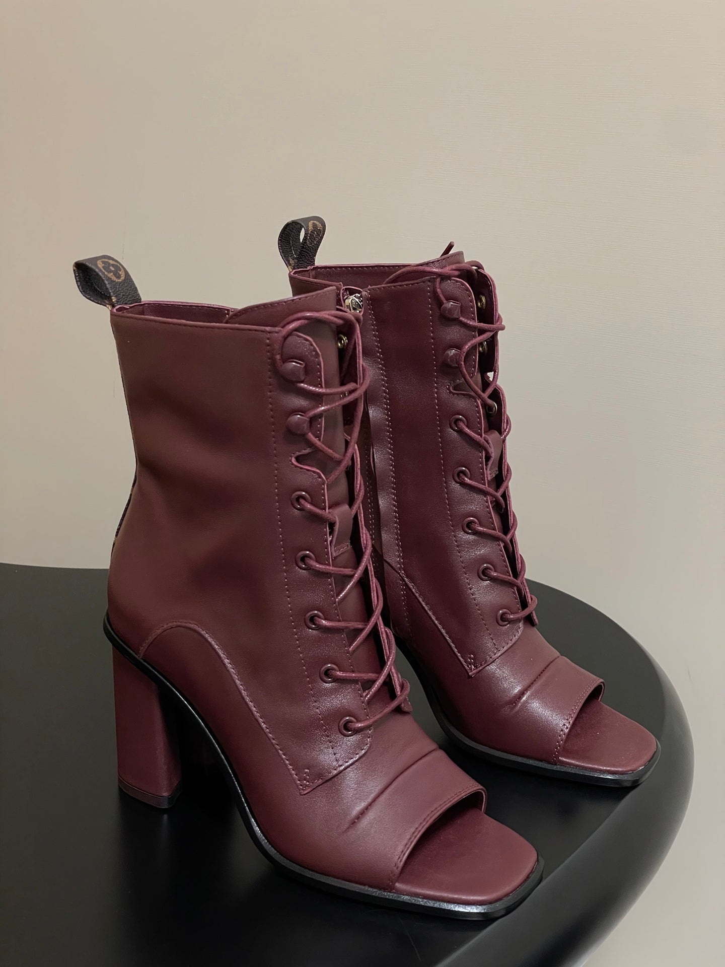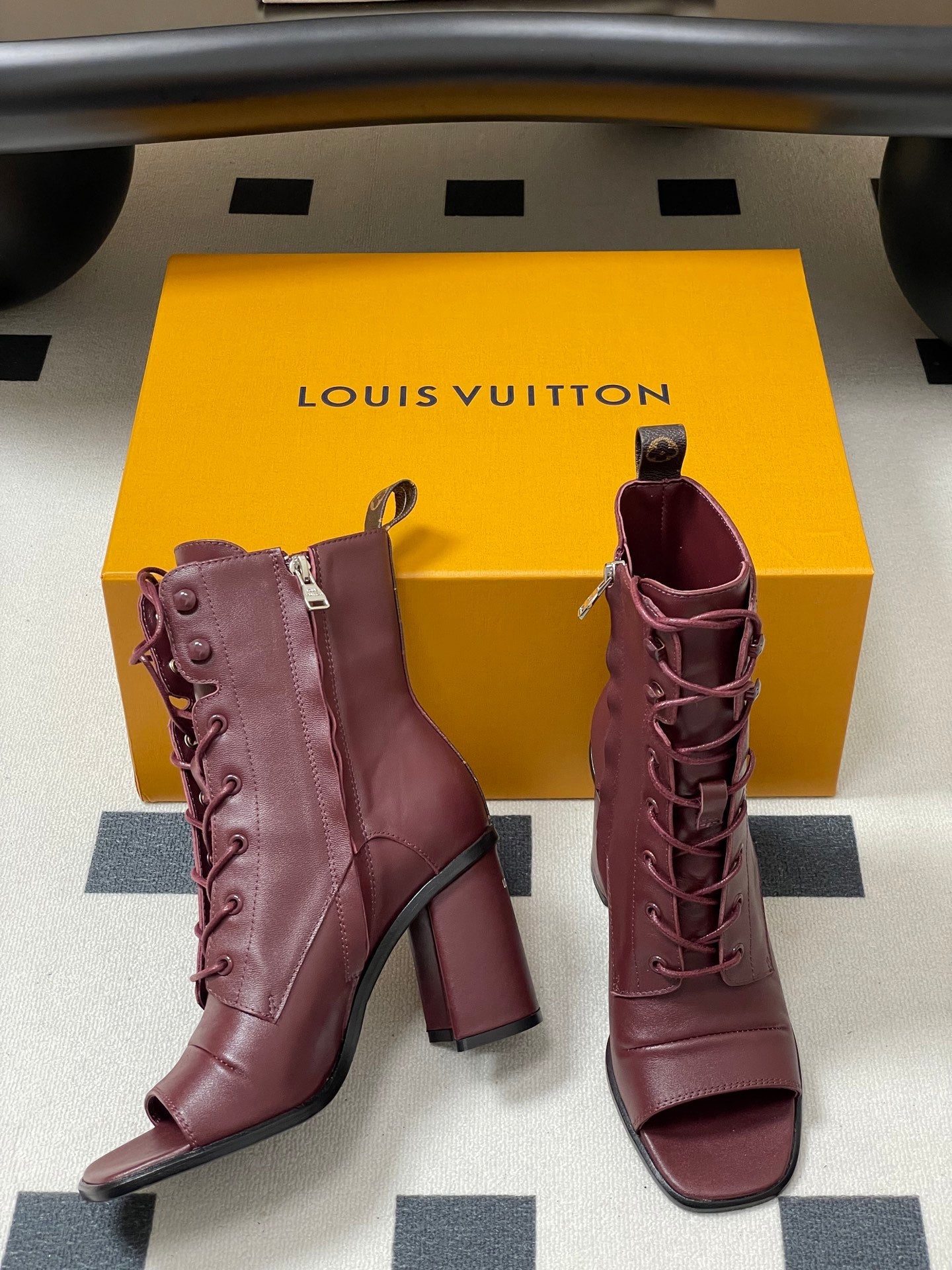 LV Berlin Open Toe Ankle Boot 85mm Bordeaux Red Calfskin 416732