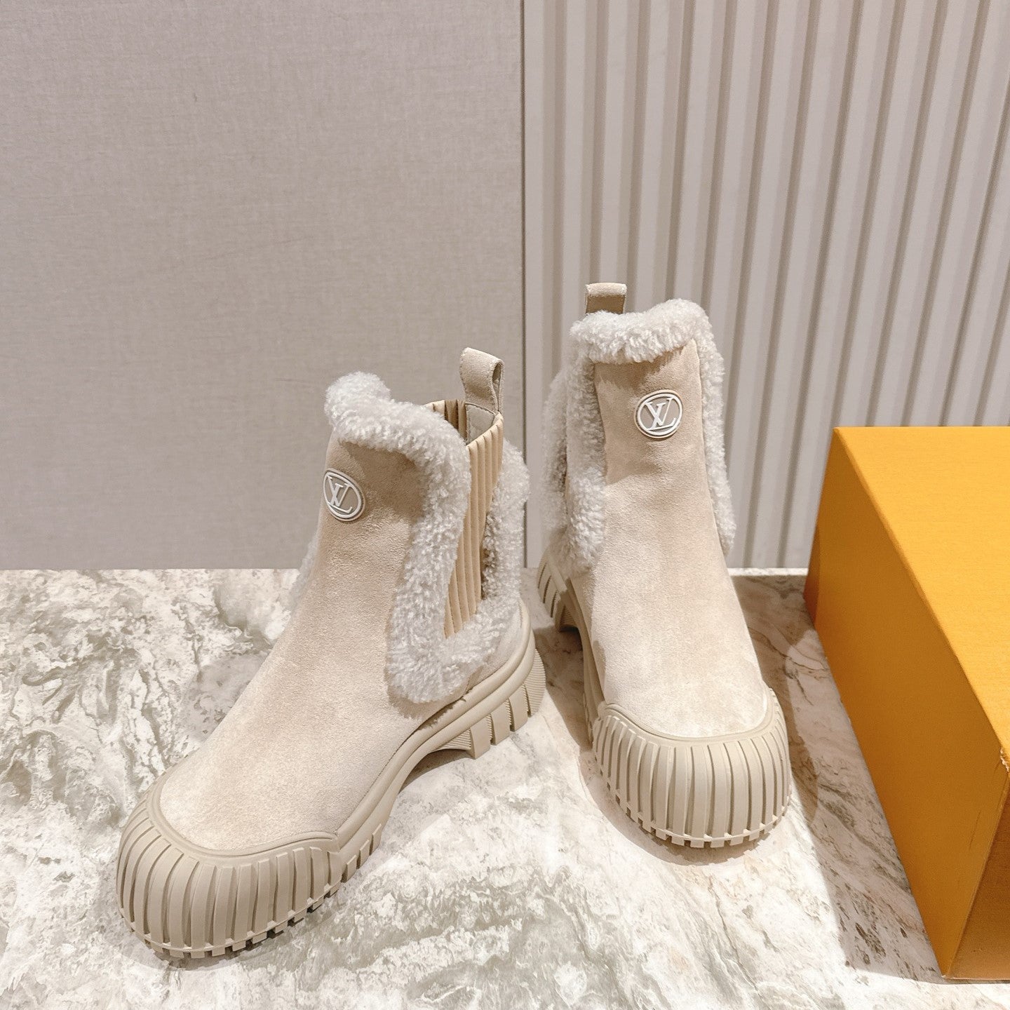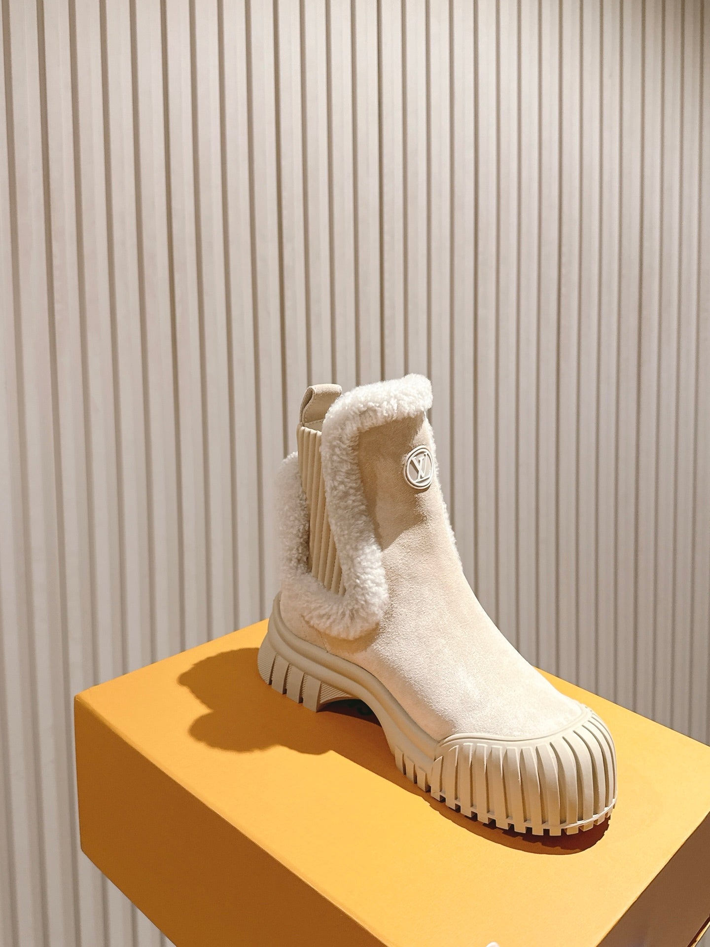 LV Ruby Flat Ankle Boot 50mm Beige Suede & Fur 450347