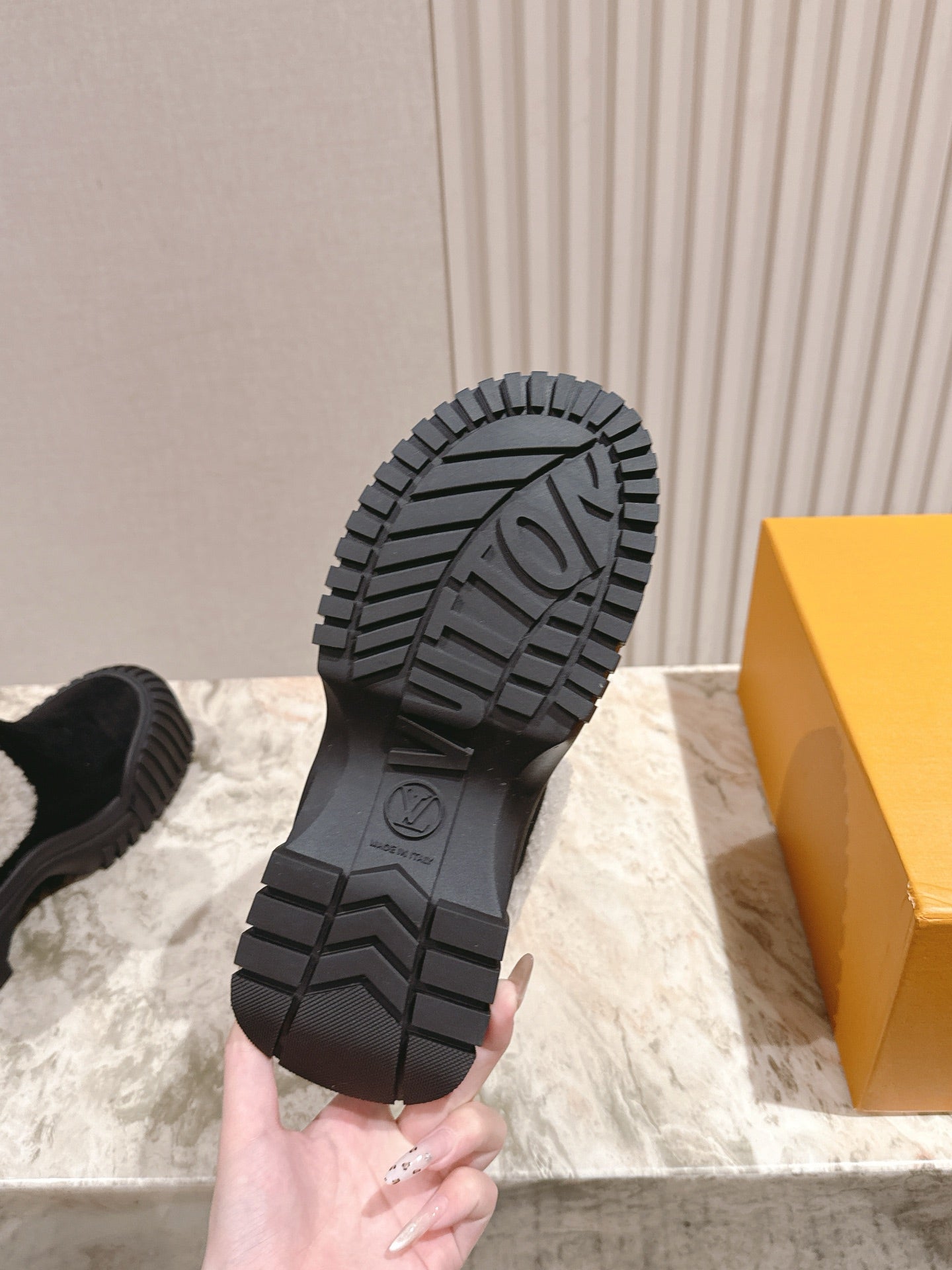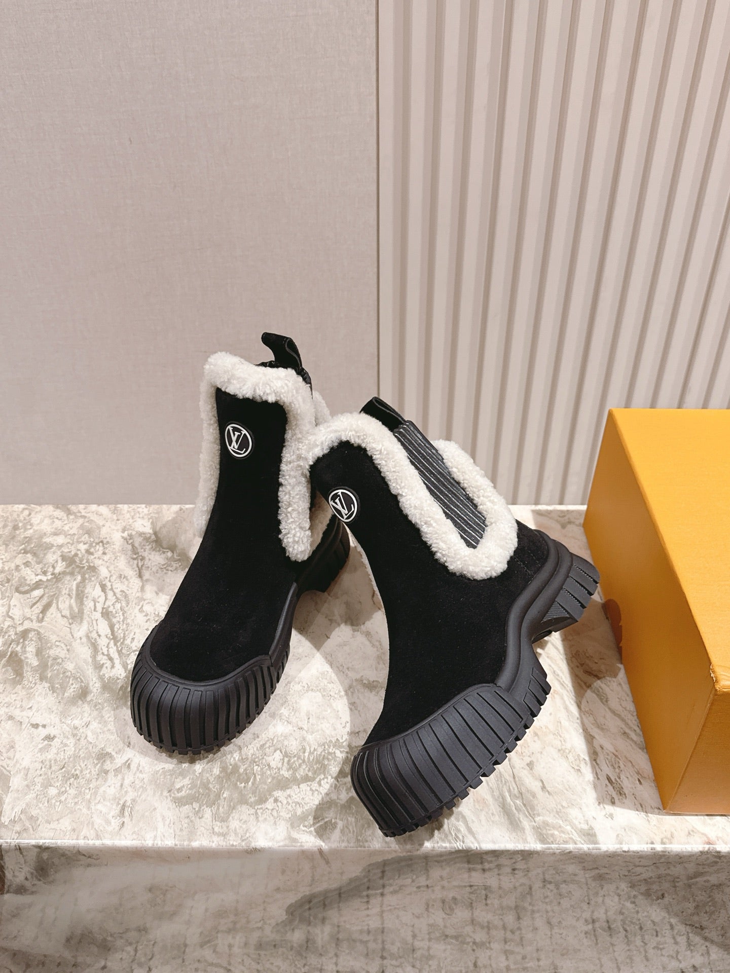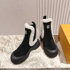 LV Ruby Flat Ankle Boot 50mm Black Suede & Fur 450348