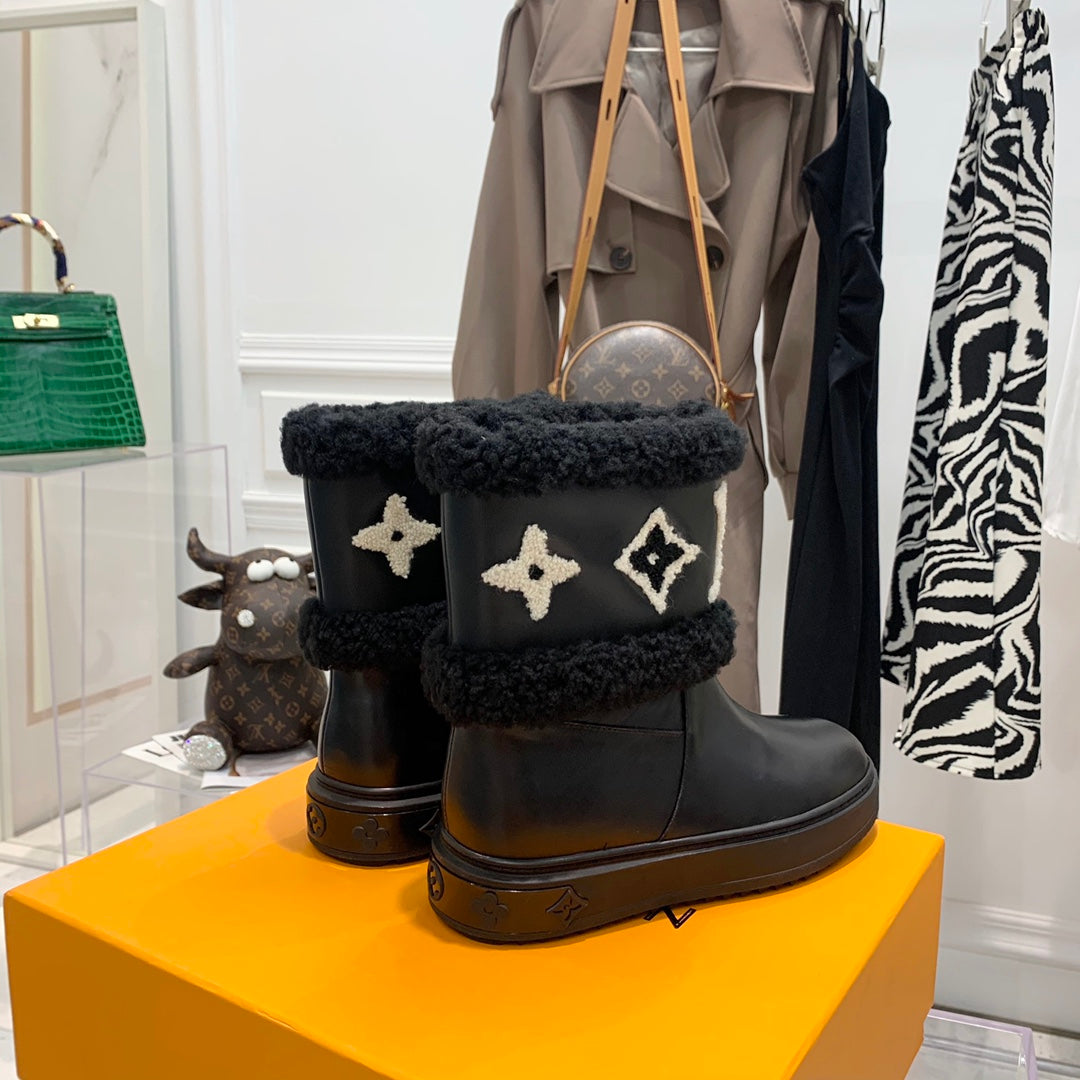 LV Snowdrop Flat Ankle Boot Black Monogram White Cowhide
