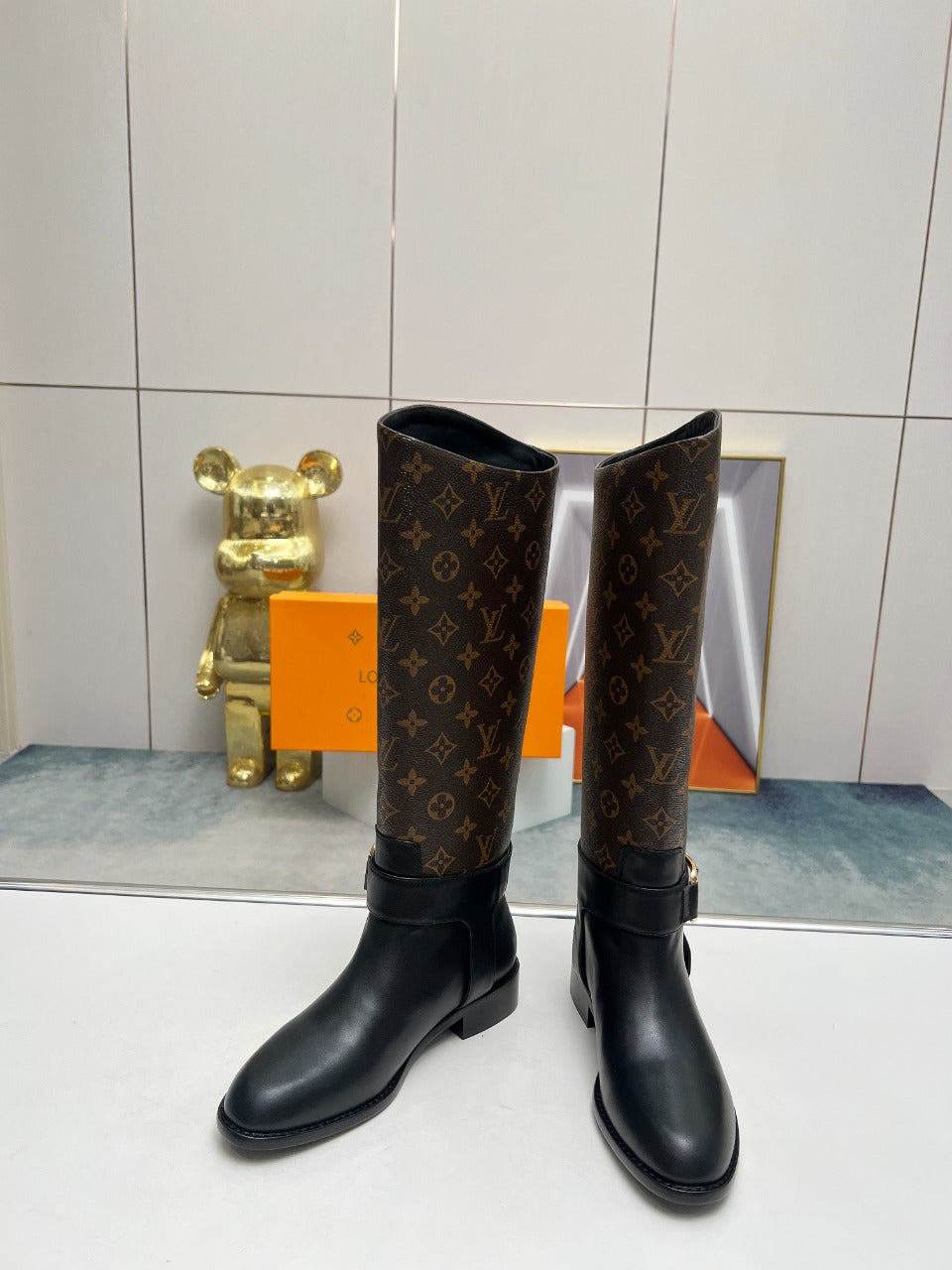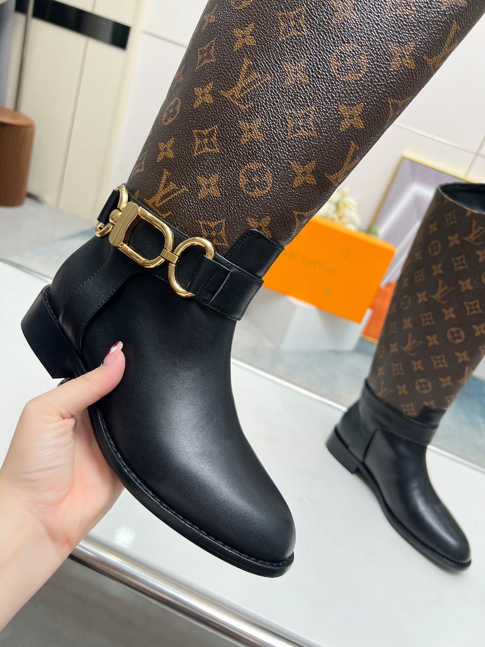 LV Westside Flat High Boot 40mm Dark Brown Monogram Lambskin