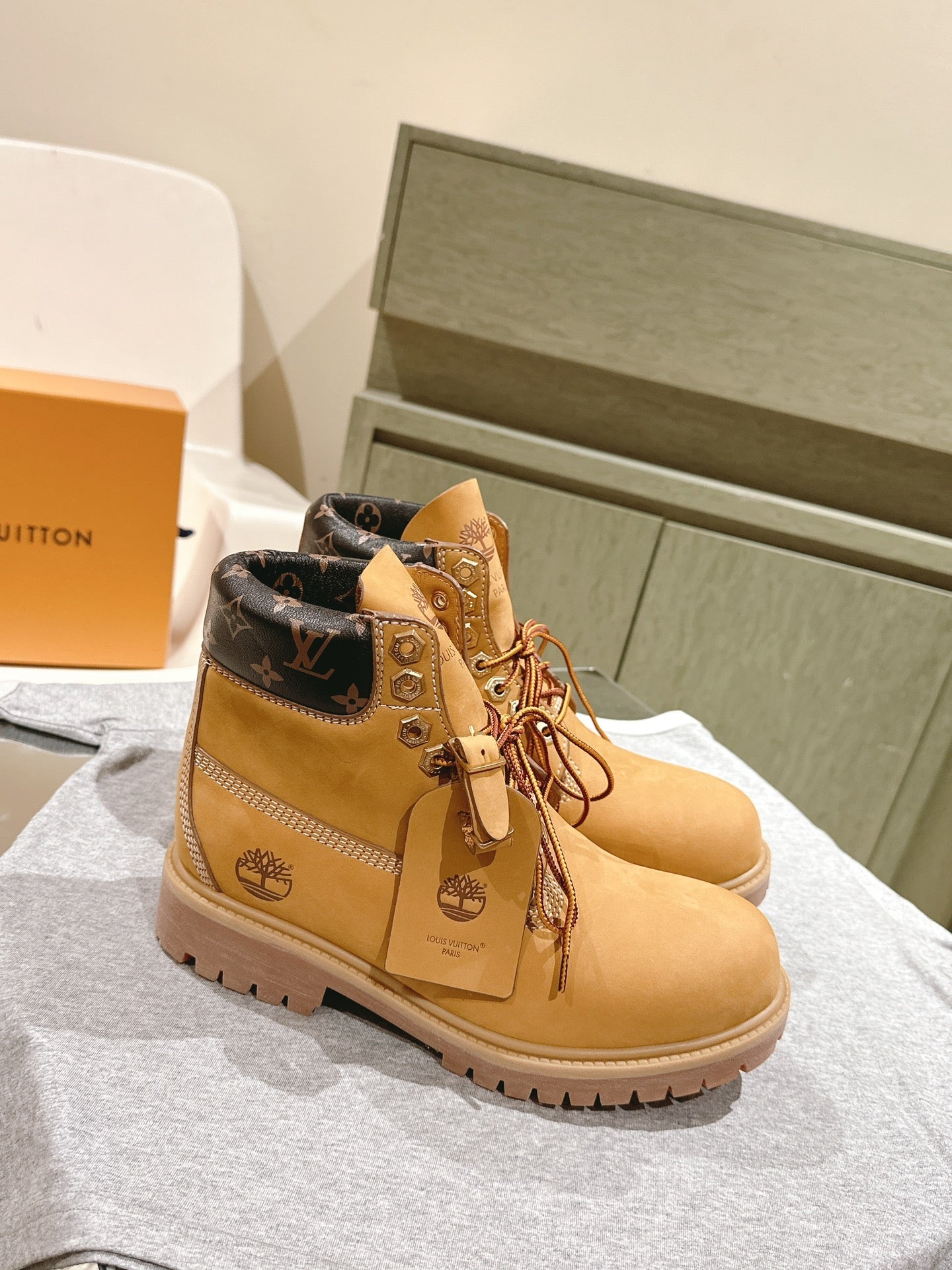 LV x Timberland 6in Ankle Boot 50mm Light Brown Suede & Monogram Canvas 450428