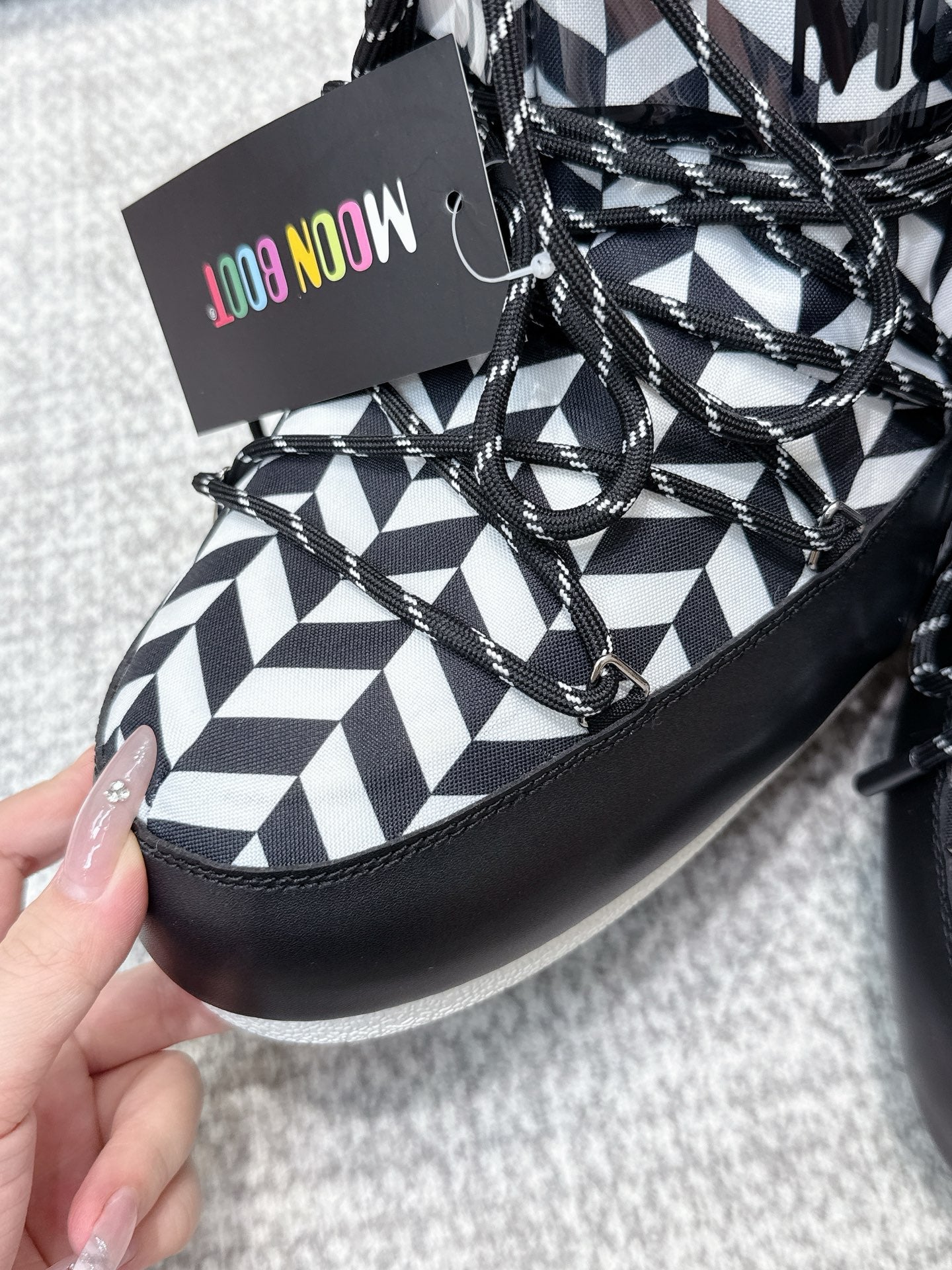Moon Boot Icon White Black Geometric Print Leather Cavas 515586