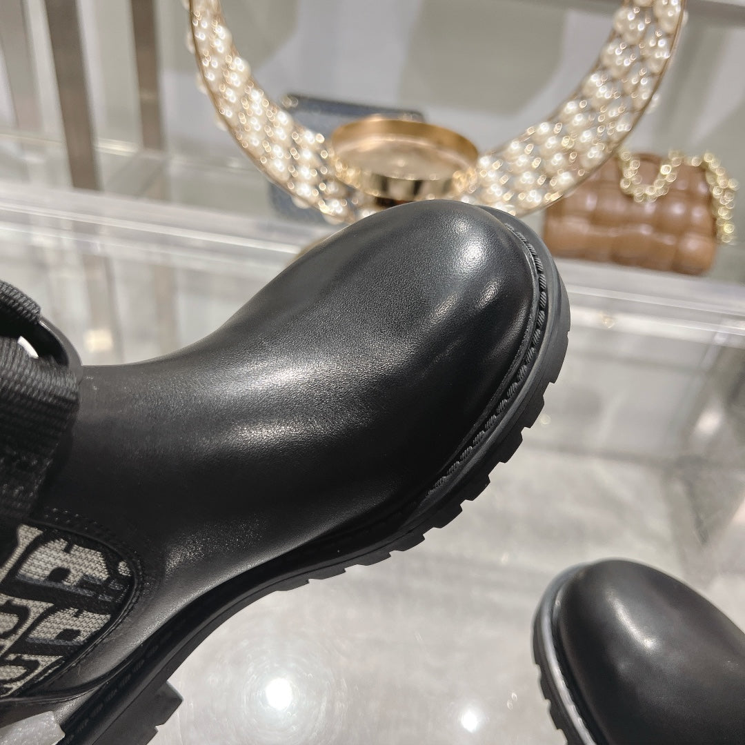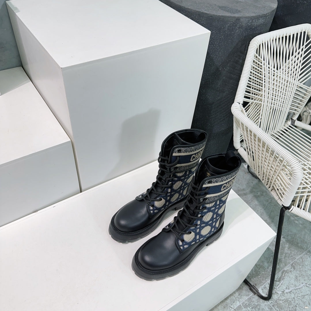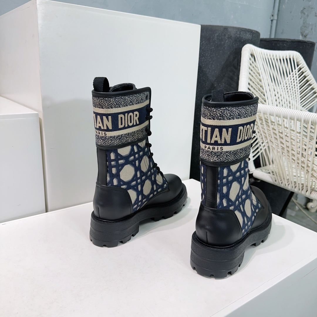 CD D-Major Boot Black Mix White Calfskin And Oblique Jacquard Fabric