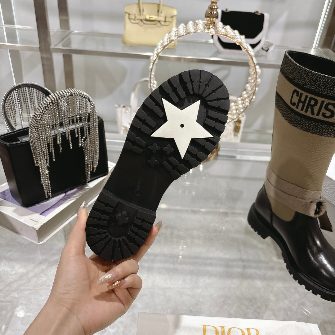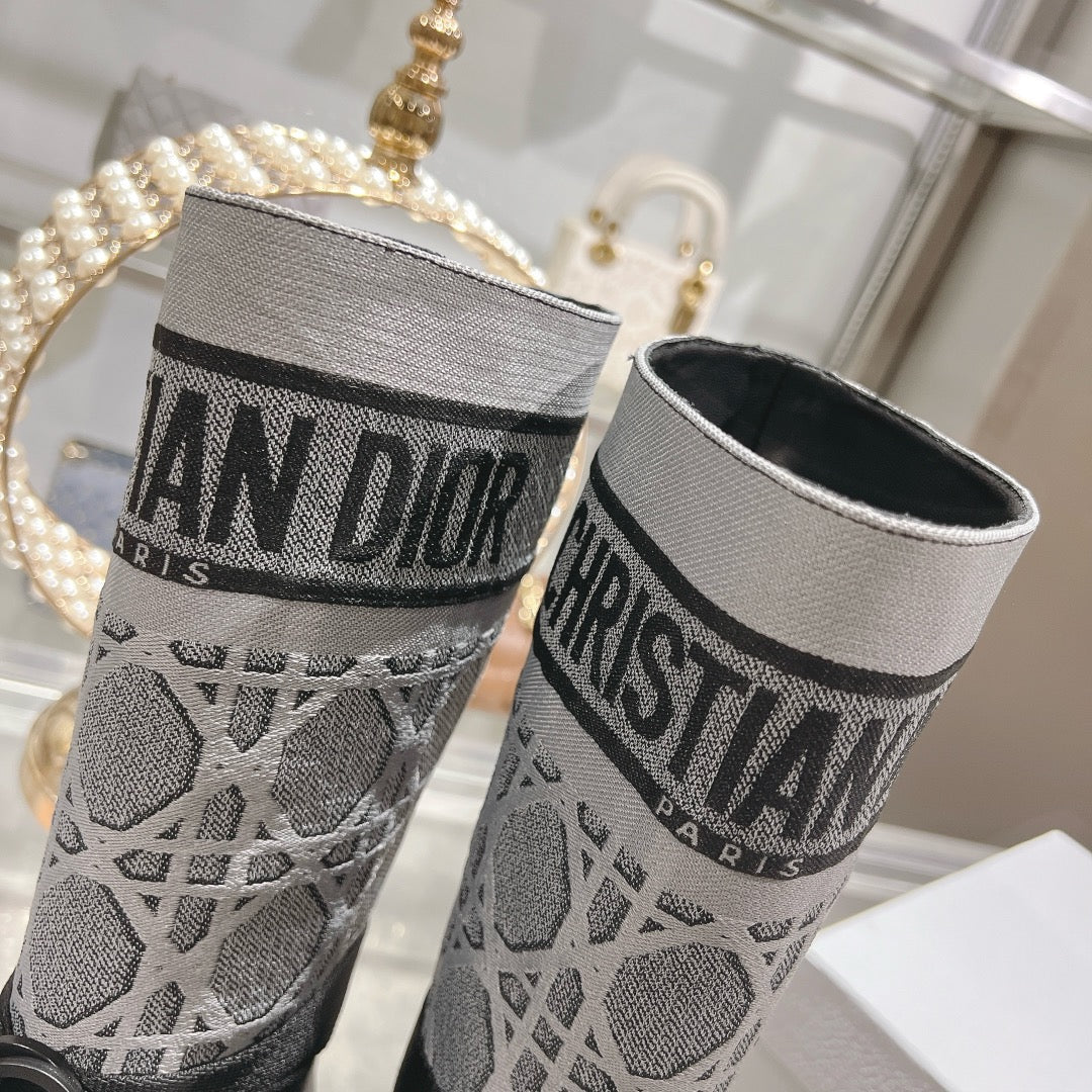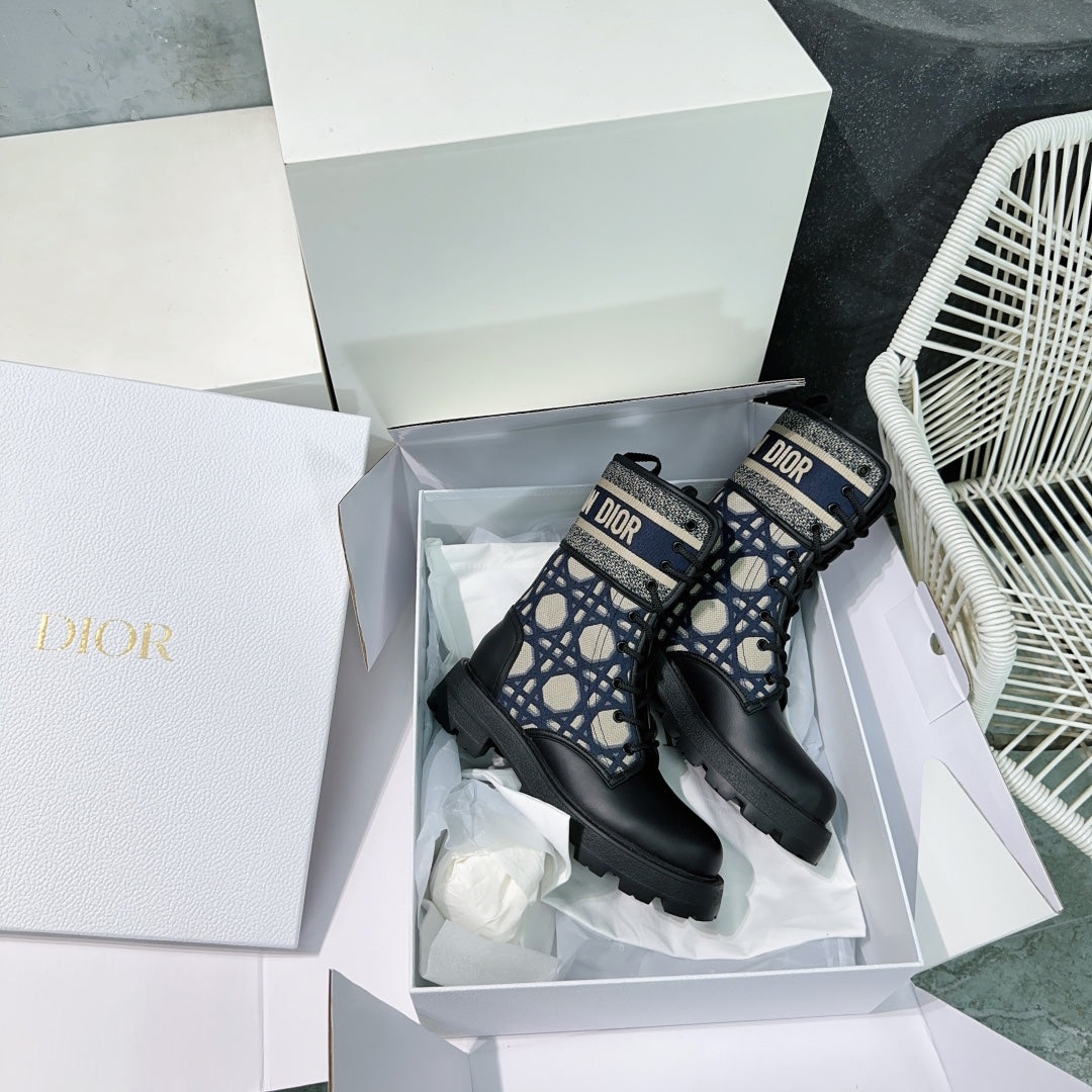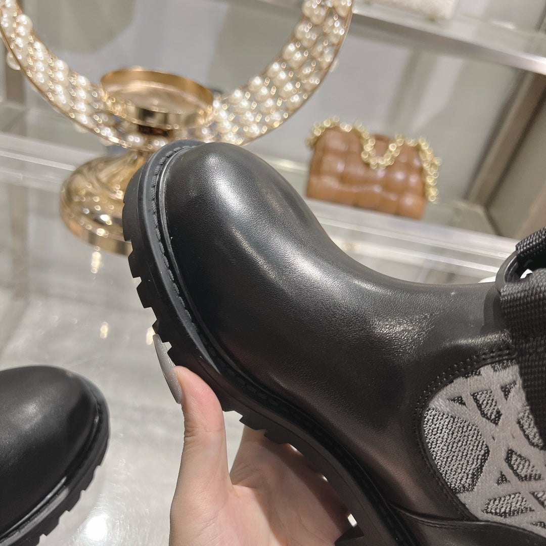 CD D-Major Boot Black Mix White Calfskin And Oblique Jacquard Fabric
