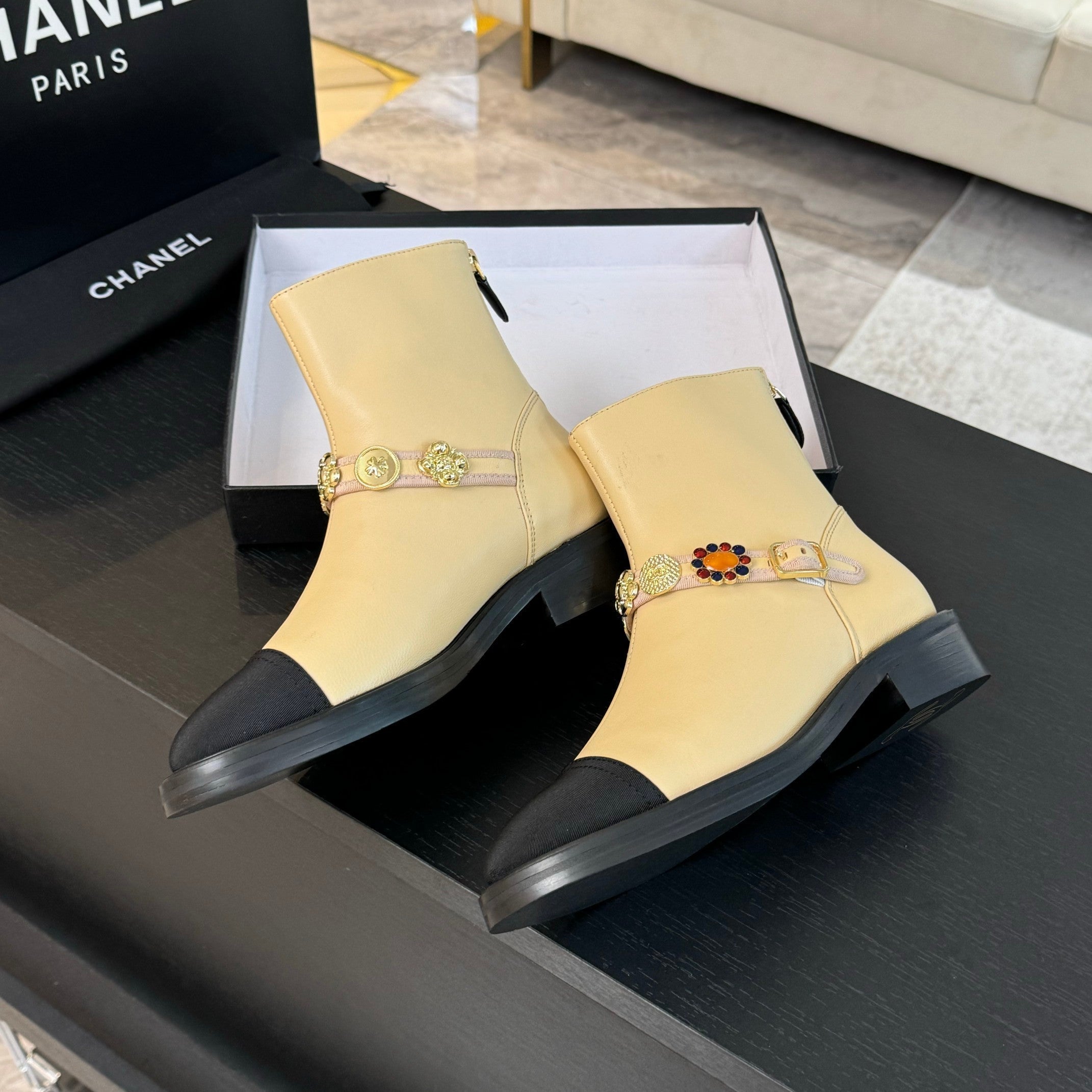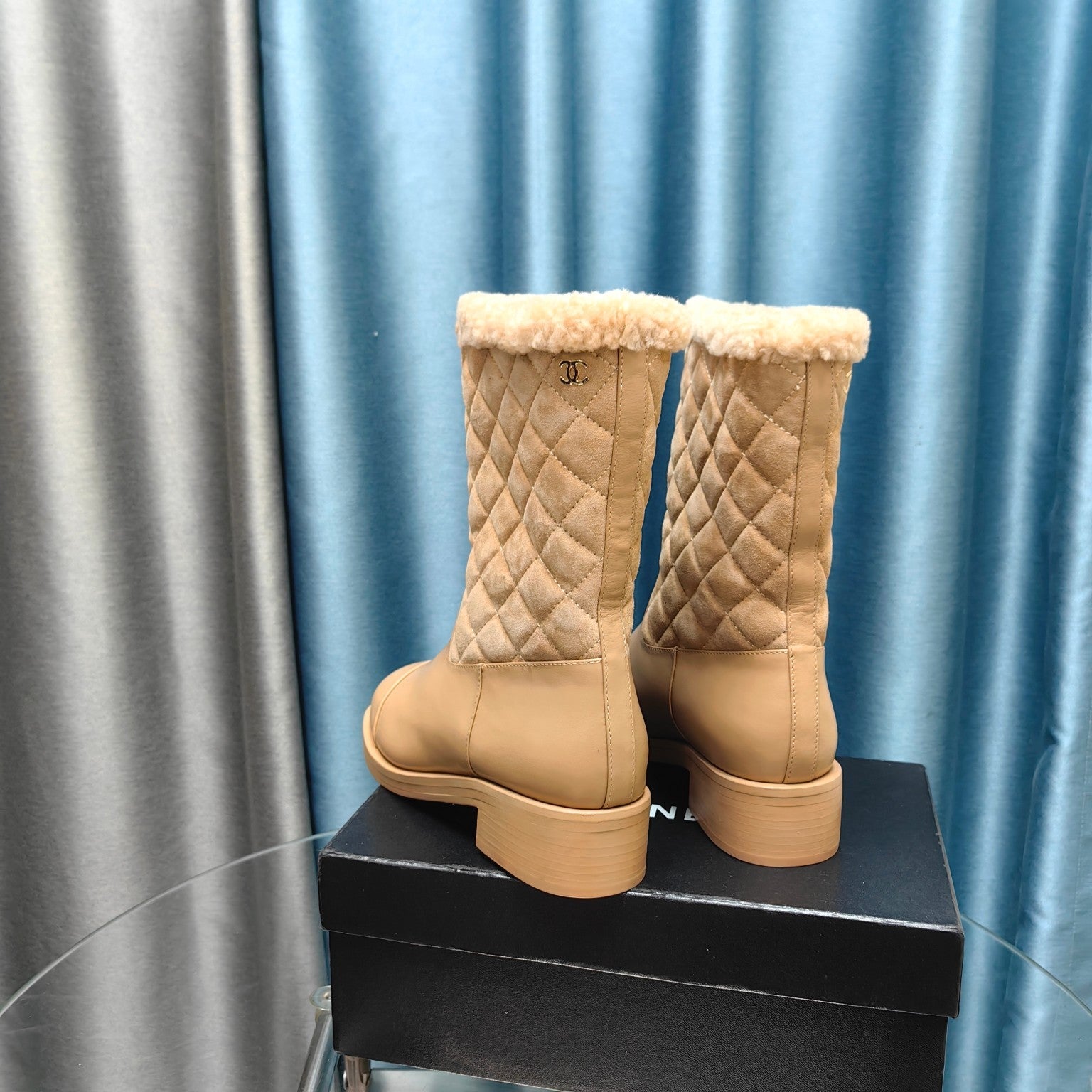 CC Short Boots Yellow Brown Suede Lining Wool And Lambskin