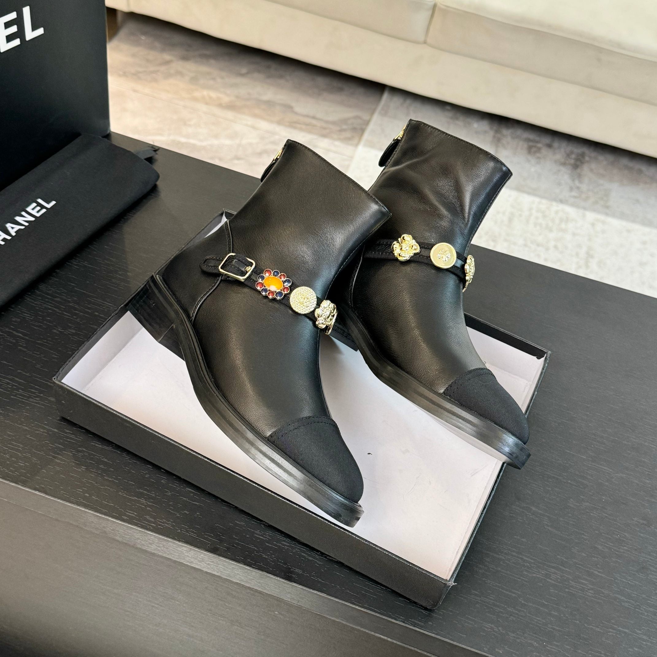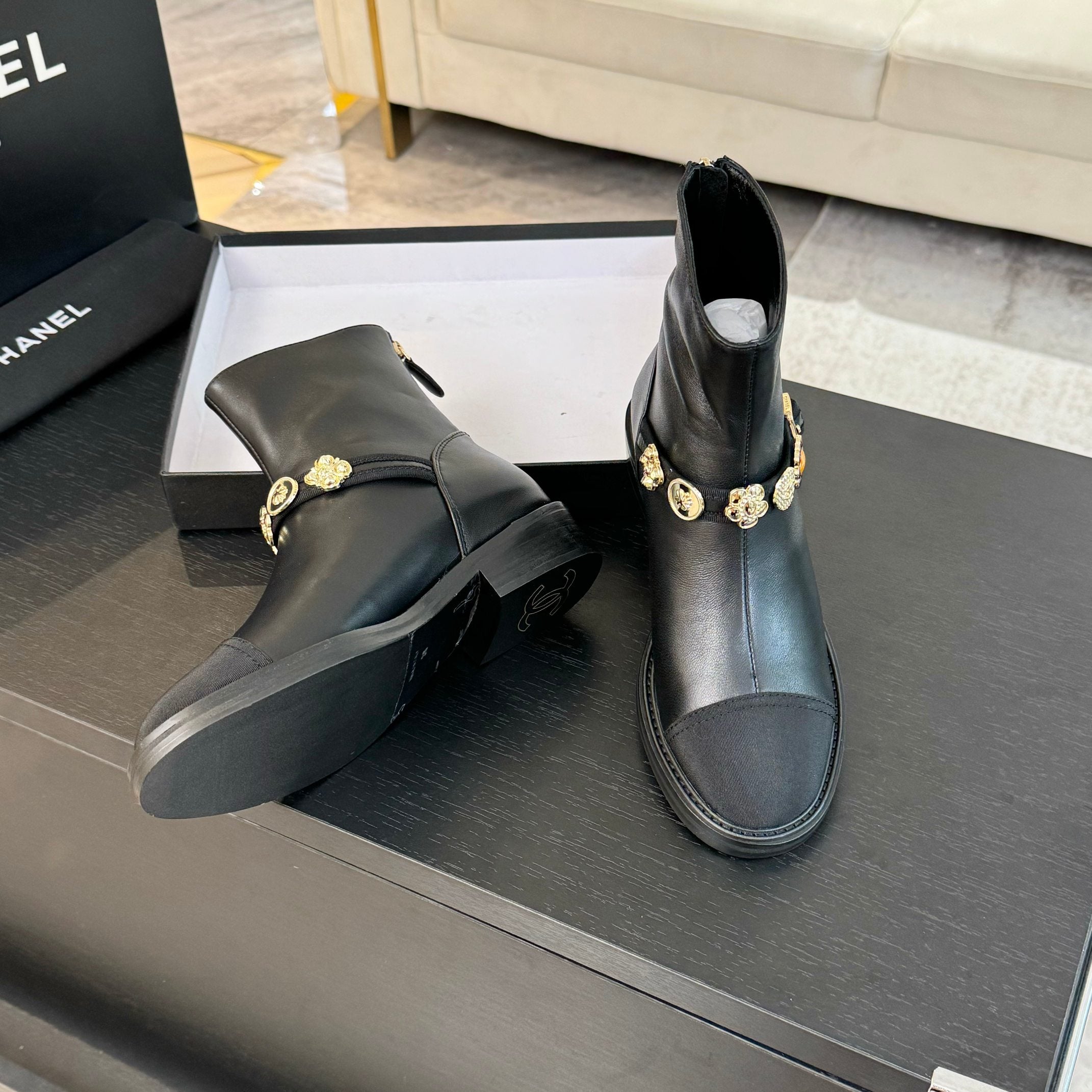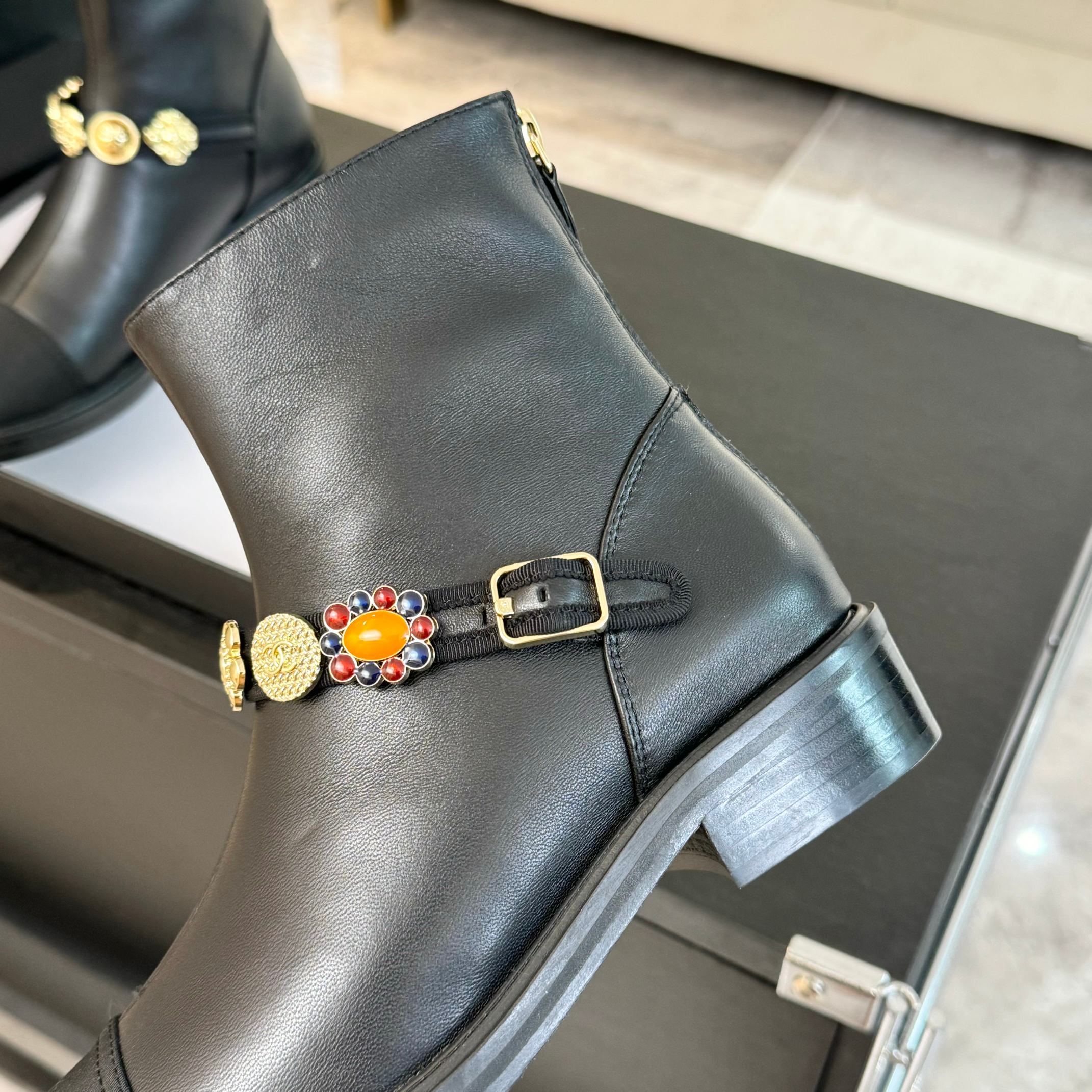 CC Short Boot Gold Metalic Lambskin Black Patent Calfskin