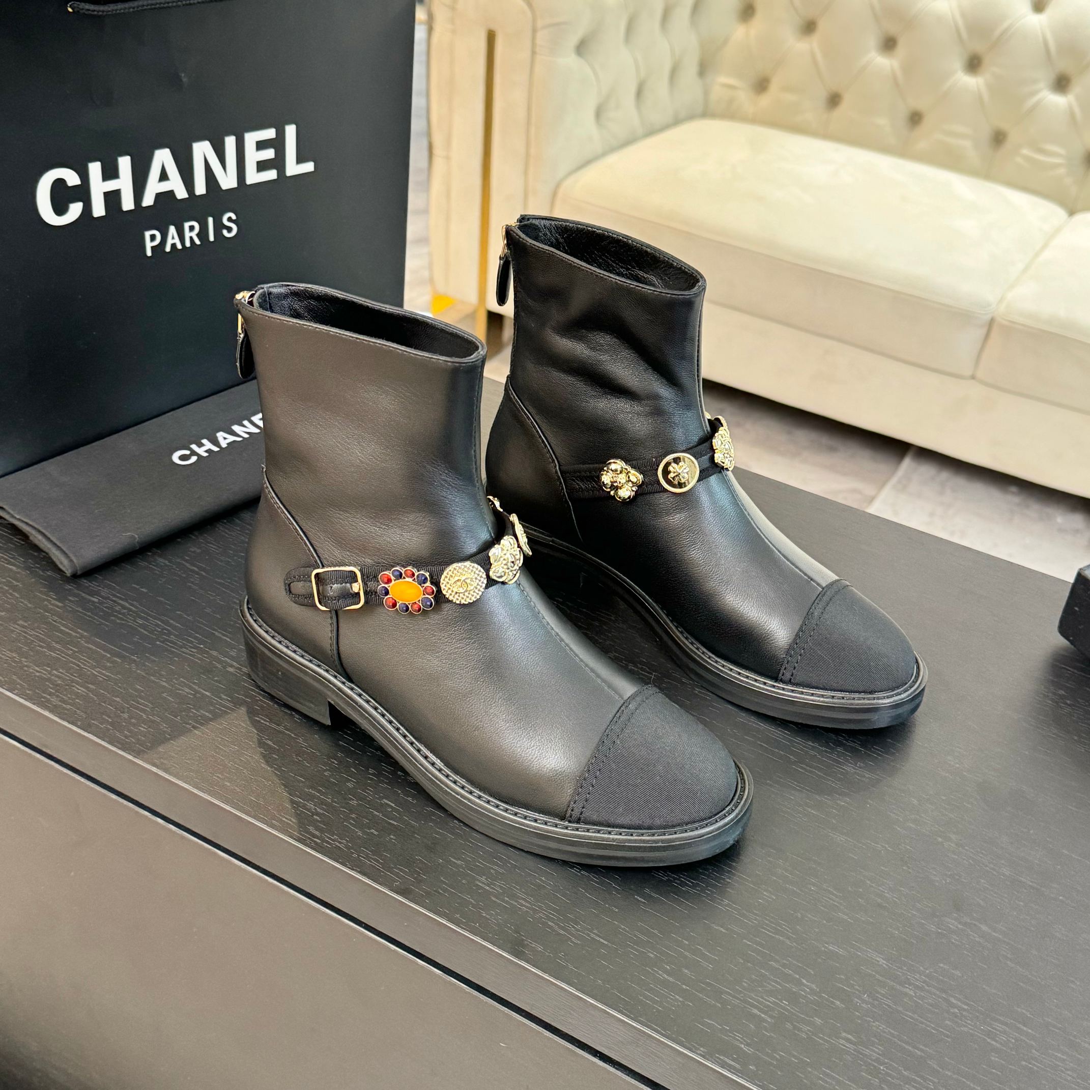 CC Short boots Black Cowhide Mix Tweed Fabric