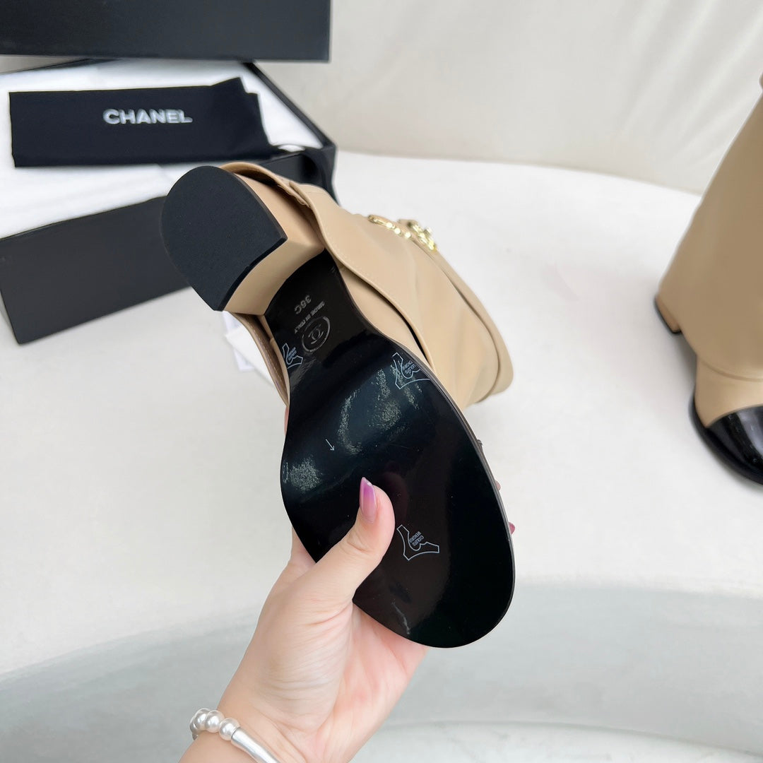 CC CHUNKY BOOTS IN BISQUE BEIGE SMOOTH FLEECE AND BLACK CALFSKIN