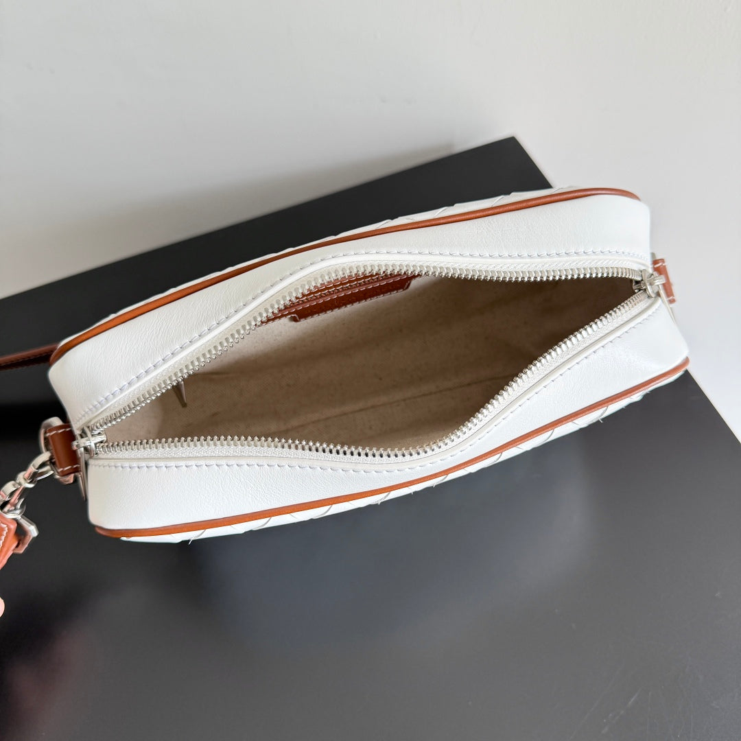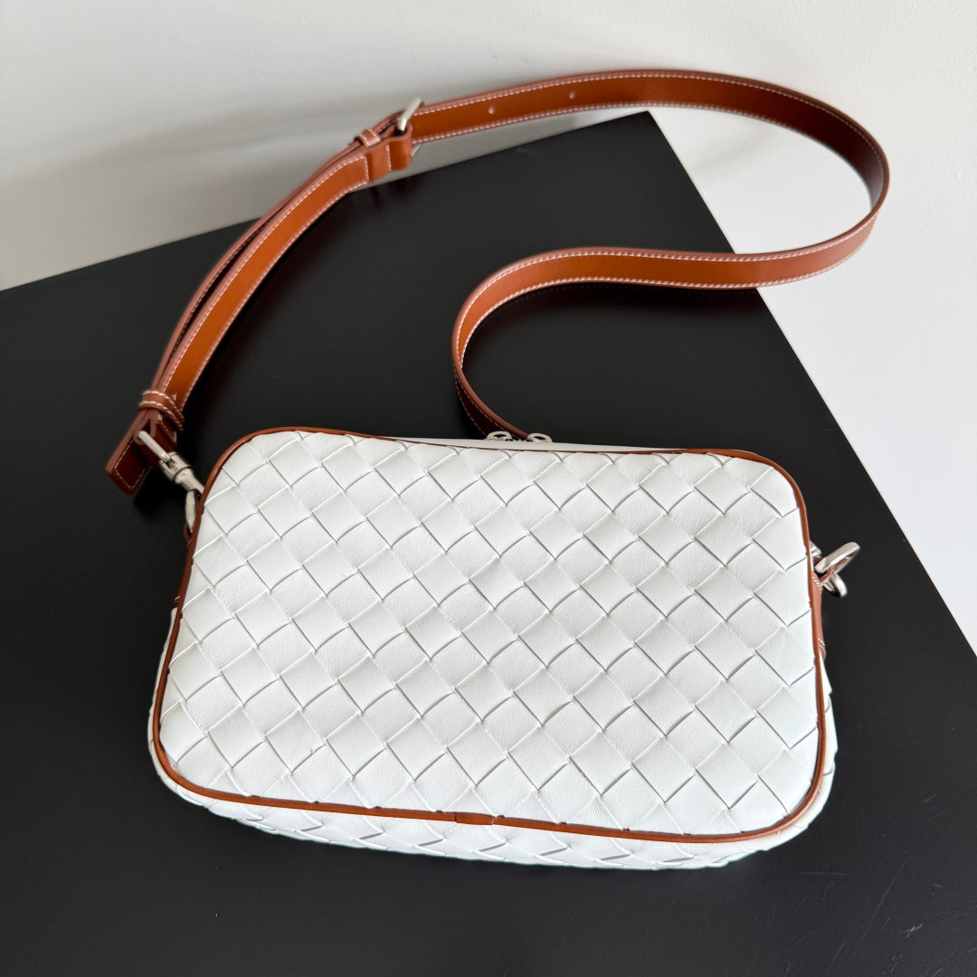 BV 25 Small Intrecciato Camera Bag 24.5cm White Cowhide HW