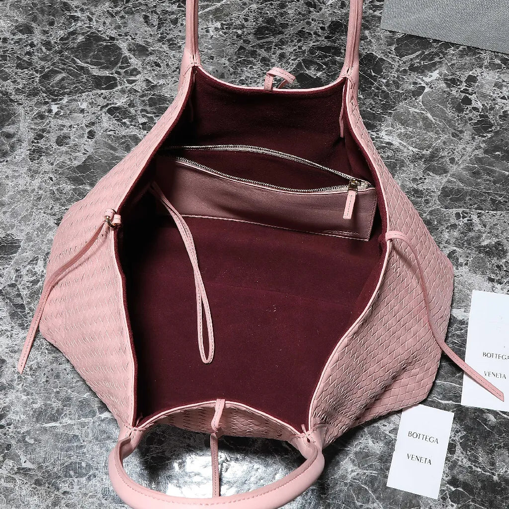 BV Pinacoteca Bag 43cm Pink Intrecciato Calfskin & Suede