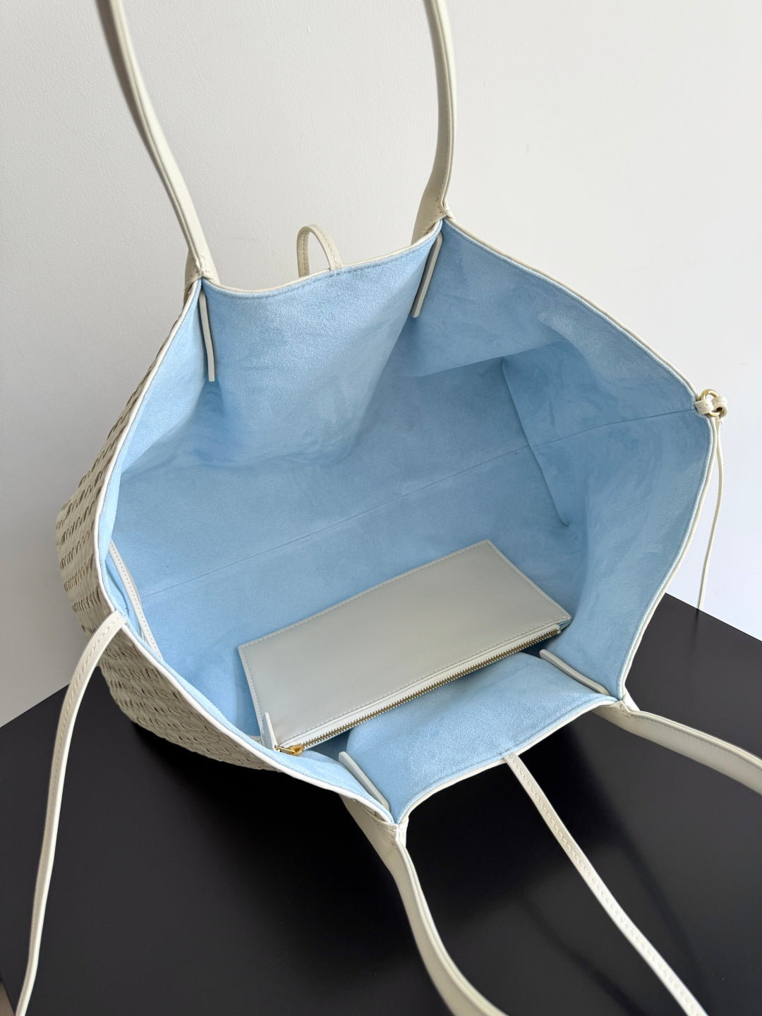 BV Pinacoteca Bag 43cm White Intrecciato Calfskin & Suede