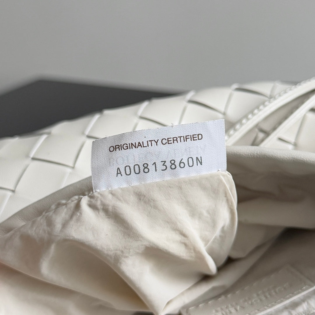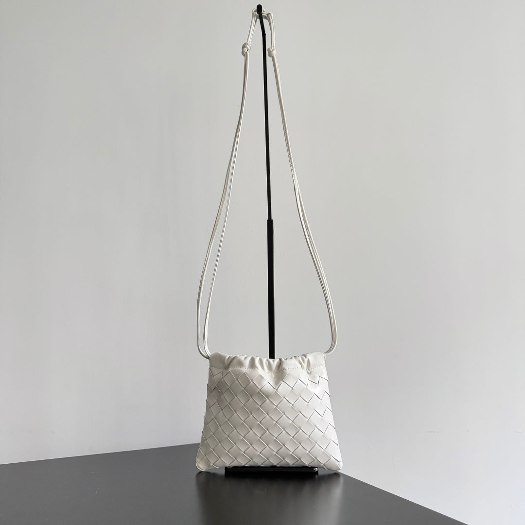 BV Small Dustbag 21cm White Intrecciato Calfskin Leather