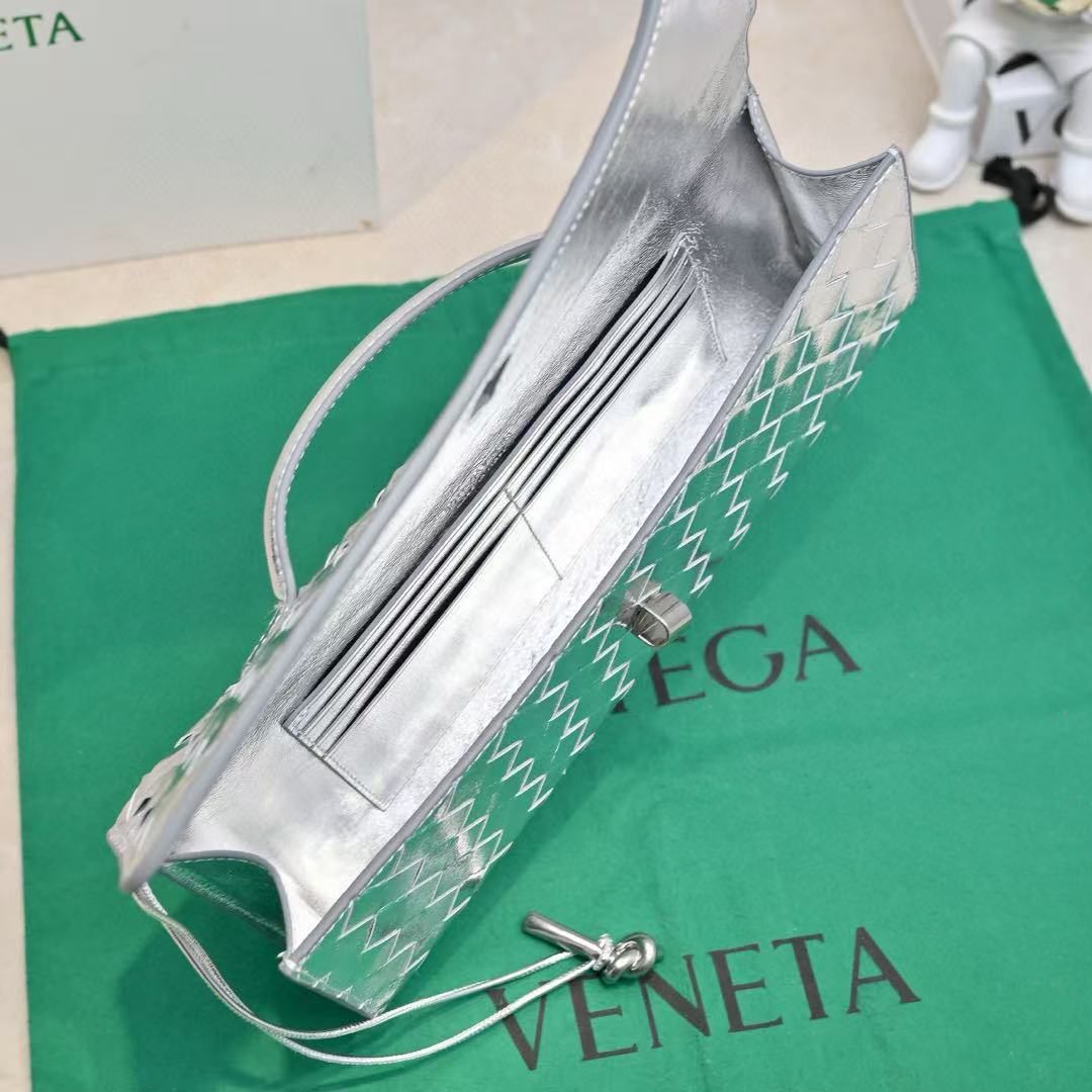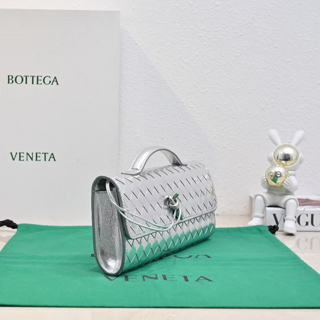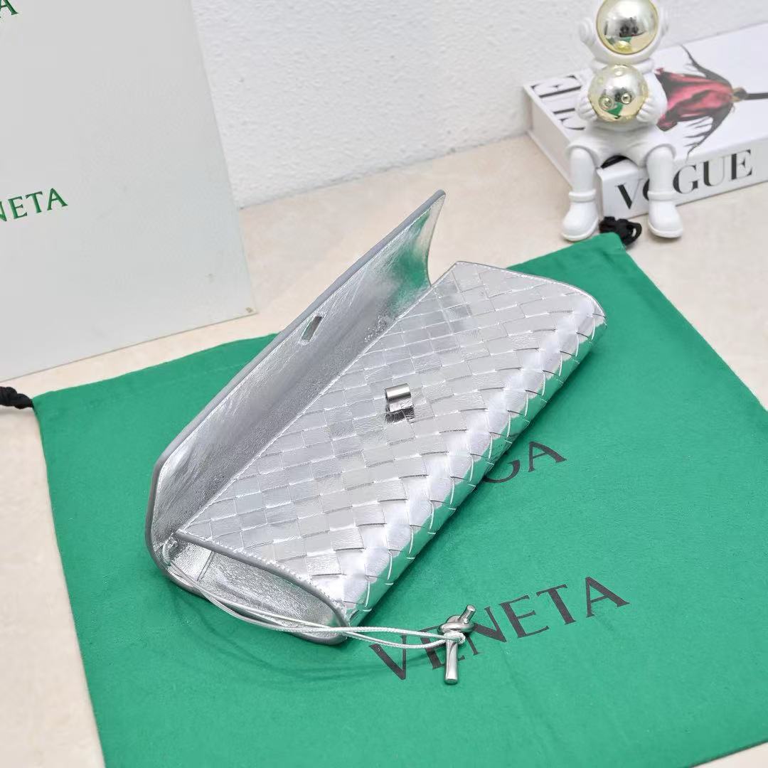 BV Long Clutch Andiamo With Handle 31cm Sliver Metalic Calfskin